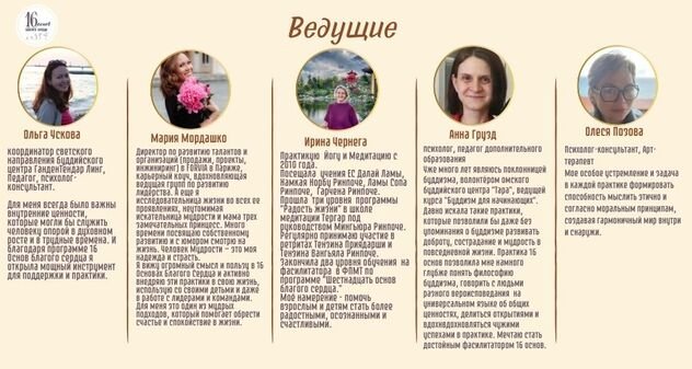 Ведущие: опытные практики – выпускники курса «16 основ благого сердца», психологи, педагоги.