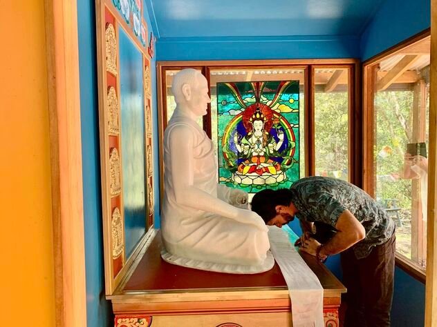 Ранее сообщалось, что 26–28 сентября в Институте Ченрезига в Австралии состоялся Фестиваль большой любви, приуроченный к пятидесятилетию учреждения, основанного в 1974 году выдающимися буддийскими наставниками – Ламой Тхубтеном Еше и Ламой Сопой Ринпоче. Институт Ченрезига, входящий в состав Фонда поддержания махаянских традиций, – один из старейших центров тибетского буддизма за пределами индийского субконтинента. В церемонии закрытия Фестиваля принял участие и Тензин Озел Хита, признанный Его Святейшеством Далай-ламой новым воплощением Ламы Тхубтена Еше. Посетив павильон с новой статуей, Озел Хита выразил свое почтение образу, созданному столь реалистично.