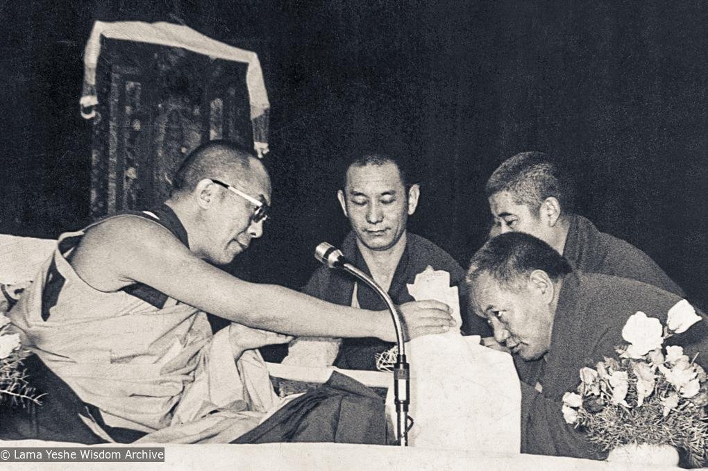 Предлагаем вашему вниманию несколько кадров о событии этой осени и архивные снимки Архива мудрости Ламы Еше, на которых запечатлены моменты встречи с Его Святейшеством Далай-ламой (в 1982 году Его Святейшество, приняв приглашение Ламы Еше, совершил тур по европейским центрам тогда уже укрепляющегося сообщества учеников Ламы Сопы и Ламы Еше, оформившегося в Фонд поддержания махаянских традиций), учения Ламы Еше перед ступой в Бодхгае, и момент участия уже нового, совсем юного воплощения Ламы – Тензина Озела Хиты – в освящении буддийской ступы в 1986 году.