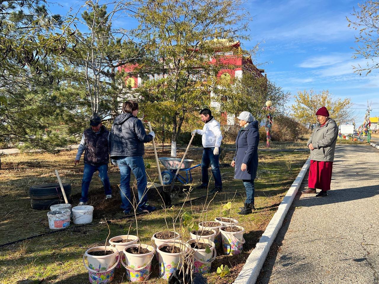 У буддийского храма Калмыкии высадили первые саженцы памятника природы «Одинокий тополь»
