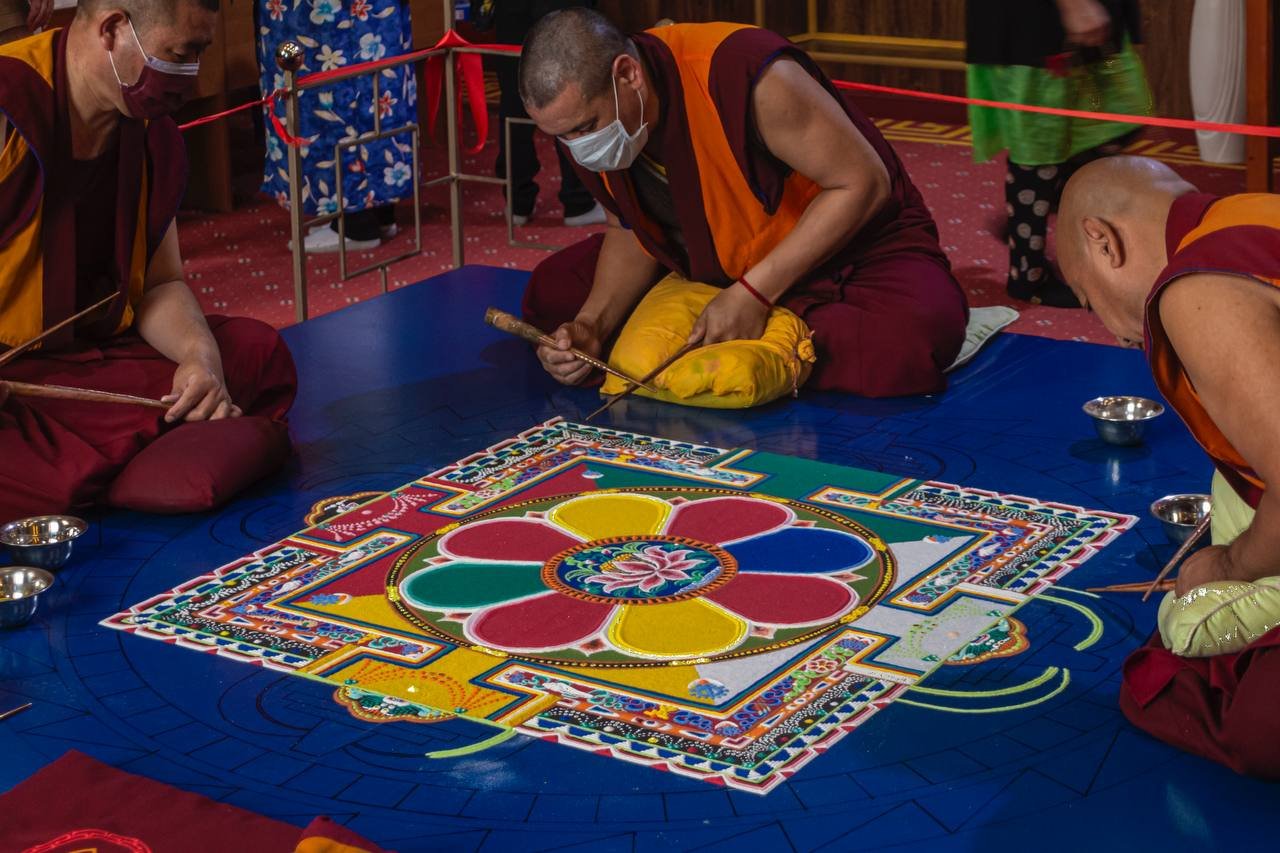 В Калмыкии делегация монастыря Дрепунг Гоманг во главе с досточтимым геше-лхарамбой Тензином Сангпо Ринпоче завершила возведение мандалы Зелёной Тары в Центральном Хуруле Элисты. Мандала будет открыта для посещения до разрушения, которое состоится 14 ноября.