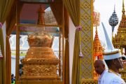4 декабря красочная торжественная процессия из более 2700 человек, проследовала от аэропорта Дон Муанг, сопровождая святыню по оживленным улицам Бангкока, после чего реликвия была помещена в павильон в Санам Луанг.