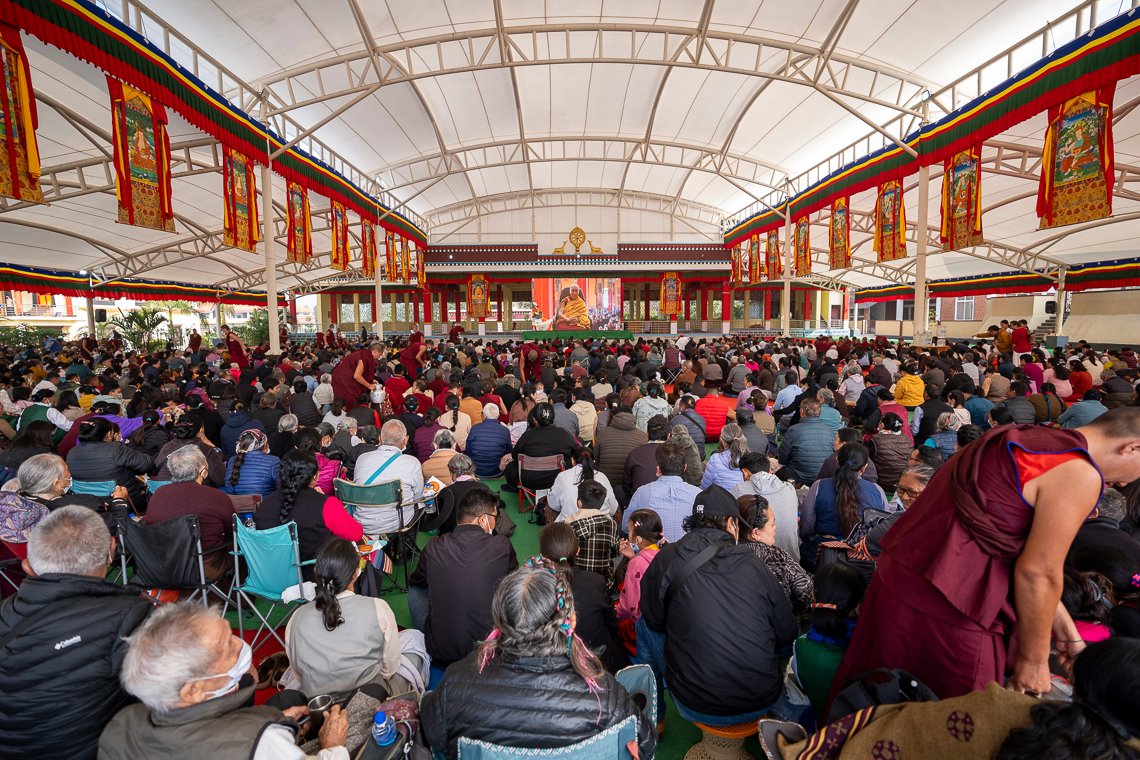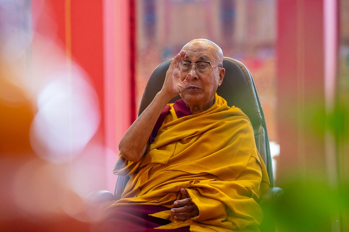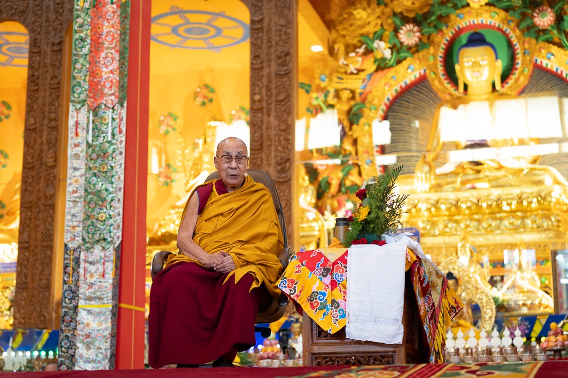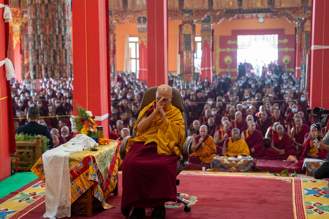По прибытии в храм Его Святейшество занял свое место напротив величественных позолоченных статуй Будды и Первого Далай-ламы, а также изображений предыдущего Панчена Ринпоче и его преемника Гендуна Чокьи Ньимы. Справа от Далай-ламы сели Шарпа Чодже Ринпоче, настоятели и бывшие настоятели монастырей. Рядом с ними расположились бывшие члены Центральной тибетской администрации и тибетского парламента в эмиграции.