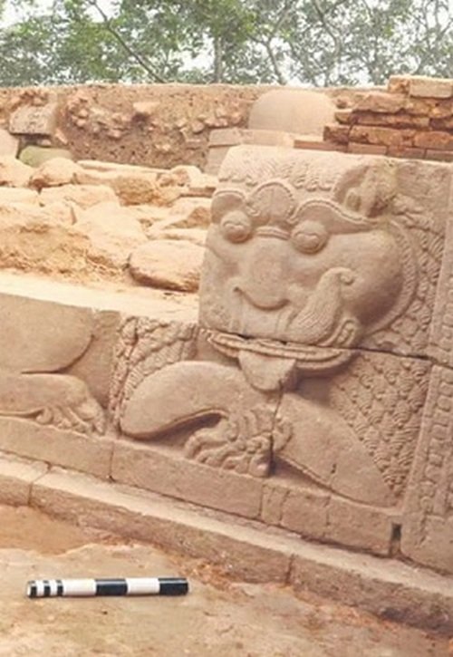 По словам главного археолога ASI Д. Б. Гарнаяка, ранние признаки захороненных элементов побудили к дальнейшему расследованию. После двух месяцев раскопок находки теперь убедительно свидетельствуют о том, что храмовый комплекс действительно находился в этой области. Подтверждением этого вывода является обнаружение трех колоссальных голов Будды с удлиненными мочками ушей и постаментом в виде льва. Эти искусно вырезанные головы изображают Будду в глубоком созерцании, с «ушнишей» – выступом на макушке, символизирующим мудрость, просветление и духовное достижение, – украшенной рядами детализированных завитков.