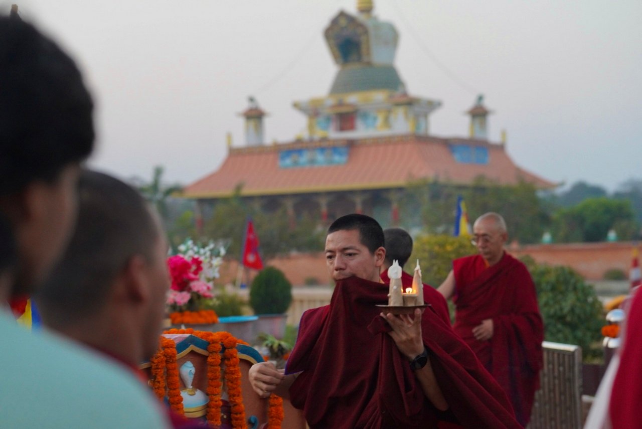 22 февраля 2025 года глава линии дрикунг кагью Его Преосвященство Дрикунг Кьябгон Четсанг Ринпоче провел торжественную церемонию омовения и освящения статуи Будды Шакьямуни у Великой лотосовой ступы дрикунг кагью в Лумбини (Непал), священном месте рождения Будды.