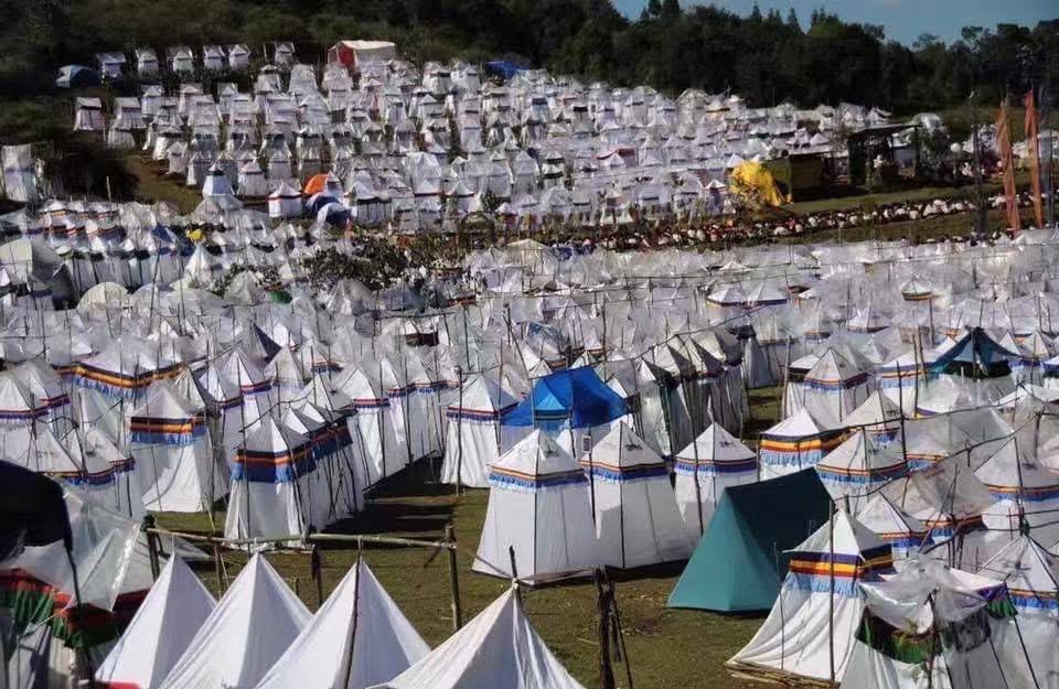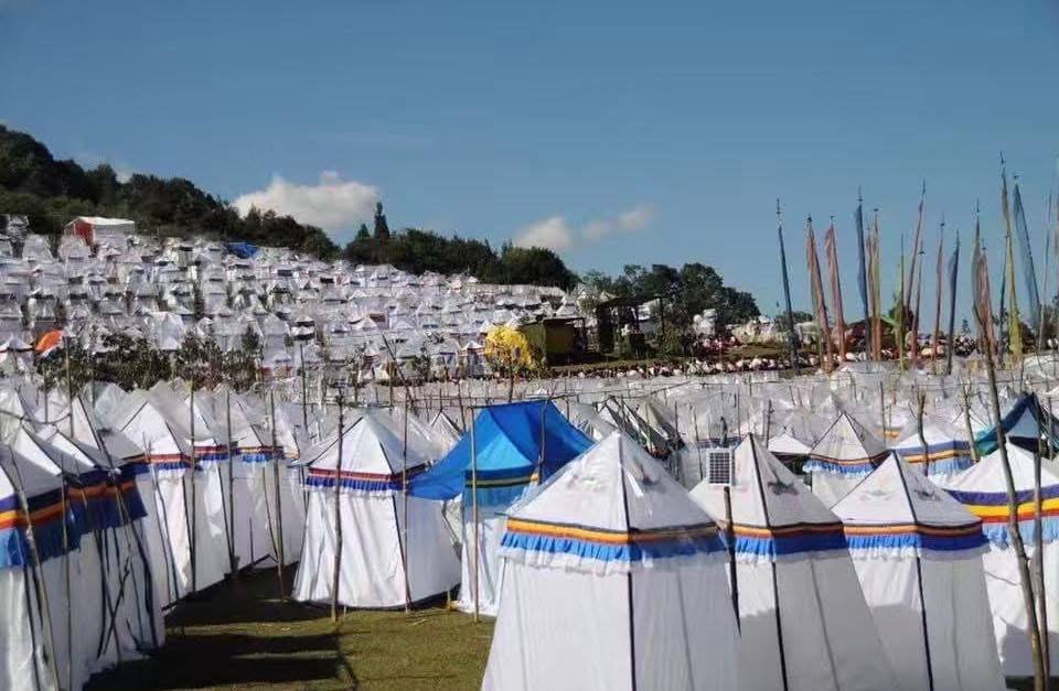 Для практики используется специальная палатка, разработанная Дуджомом Лингпой. Она представляет собой пространство без окон площадью чуть более квадратного метра. Это минимальное пространство, необходимое именно для практики в положении сидя, а не для сна или отдыха.