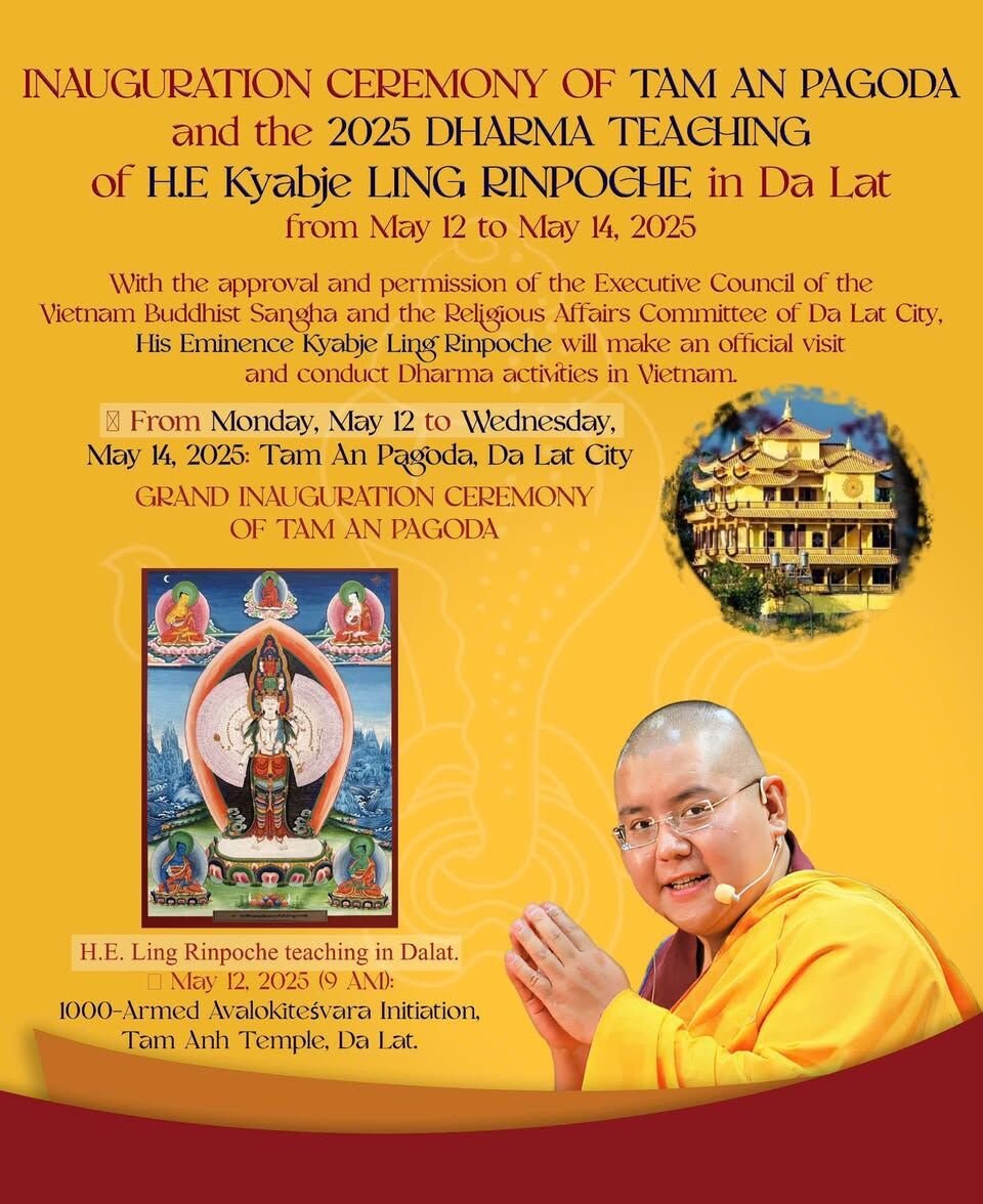 Утром 8 мая 2025 года Кьябдже Линг Ринпоче прибыл в аэропорт Ханоя во Вьетнаме, где был тепло встречен монахами местных монастырей и учениками Ринпоче. Официальный визит Линга Ринпоче во Вьетнам проходит по согласованию с Исполнительным советом вьетнамской буддийской Сангхи и Комитета по религиозным делам городов Ханой и Далат.