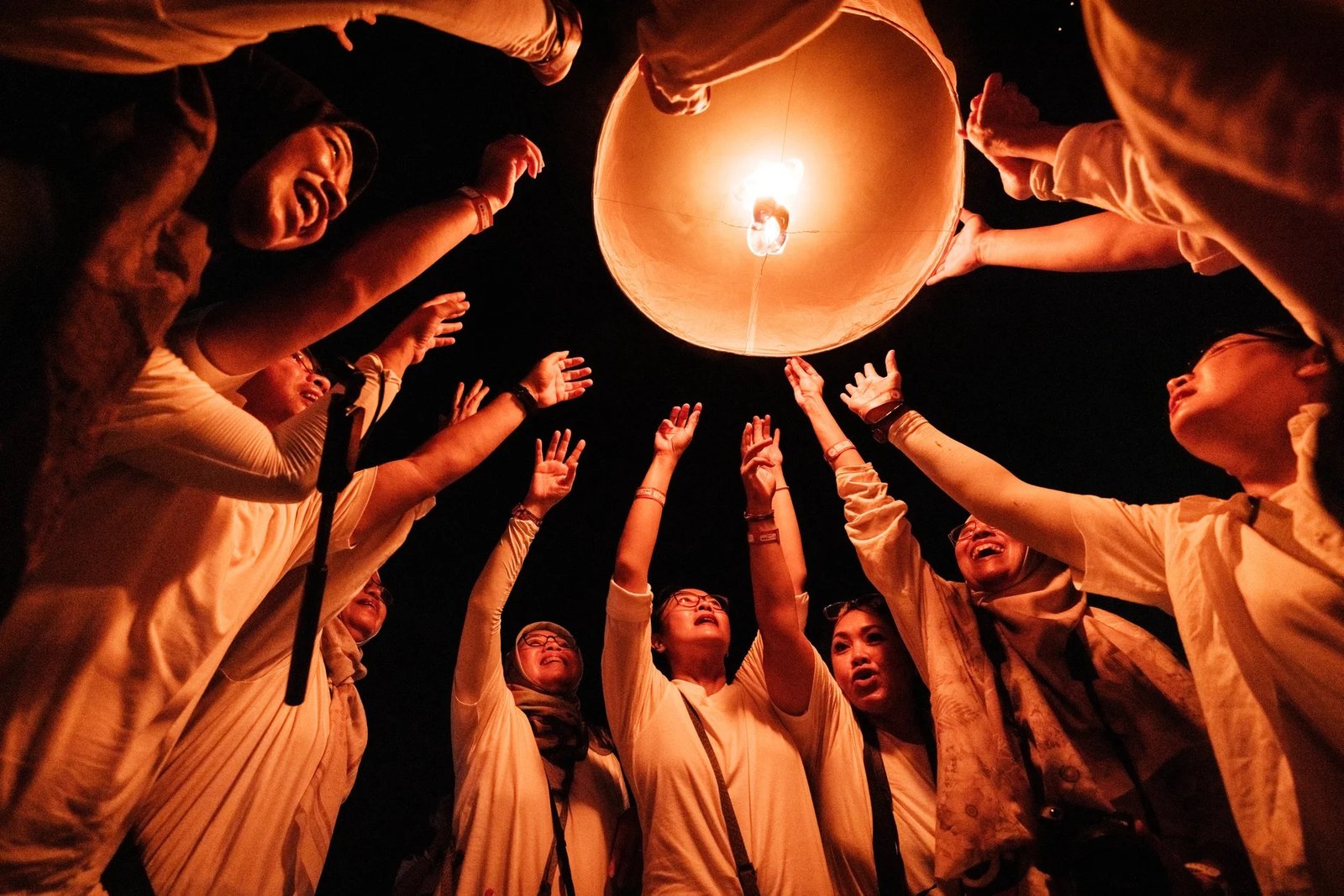 Местные жители запускают фонарик у храма Боробудур в Магеланге. Центральная Ява, Индонезия. Фото: AFP/Getty Images