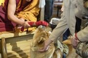 Во время церемонии хозяева обвели животных вокруг статуи Будды Шакьямуни, в сердечной части которой хранятся мощи Будды, преподнесенные в дар монастырю Его Святейшеством Далай-ламой XIV.