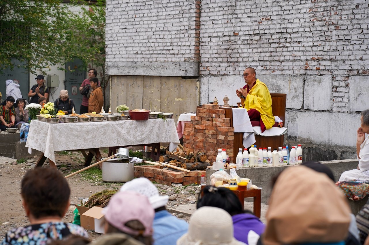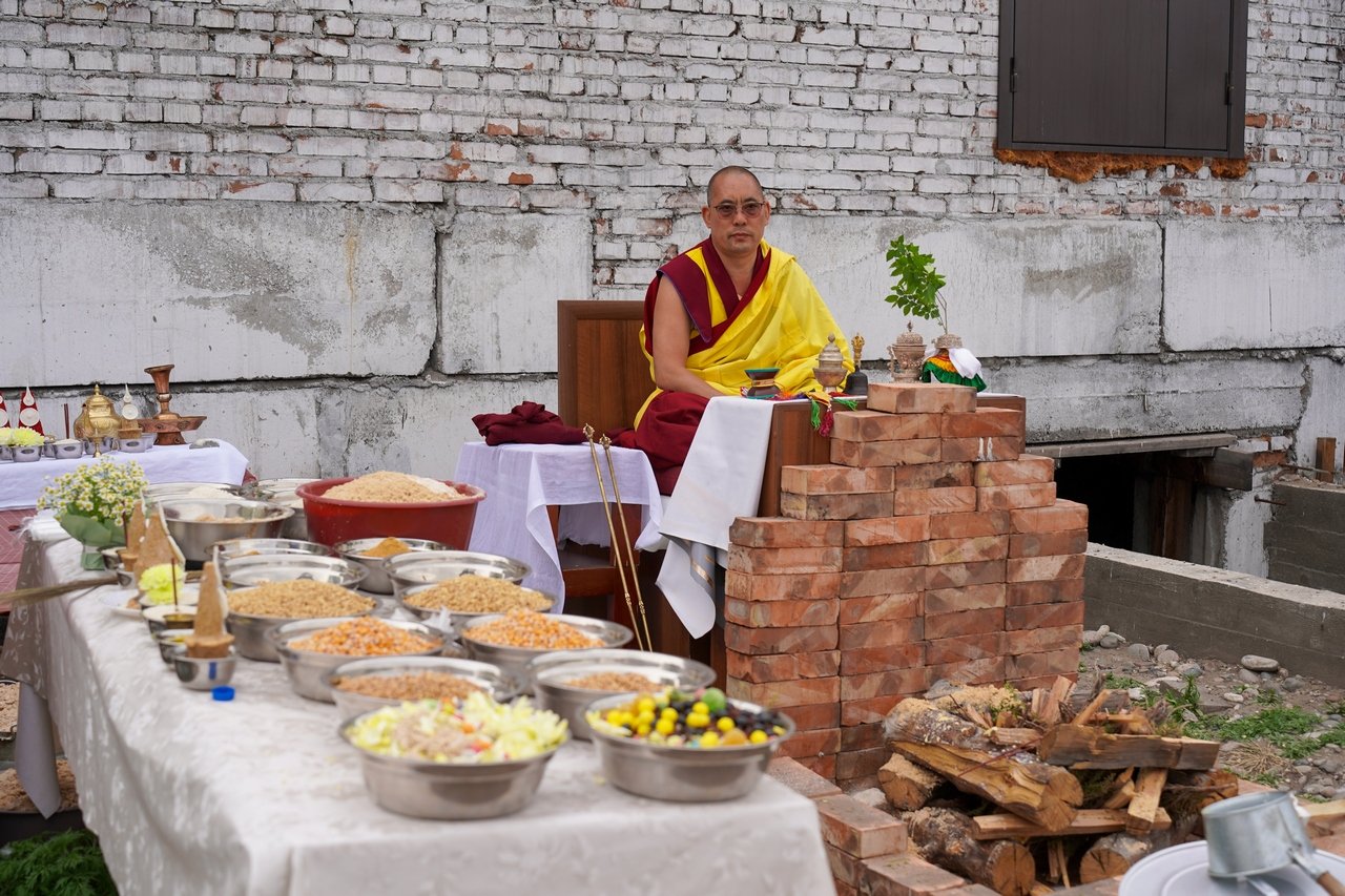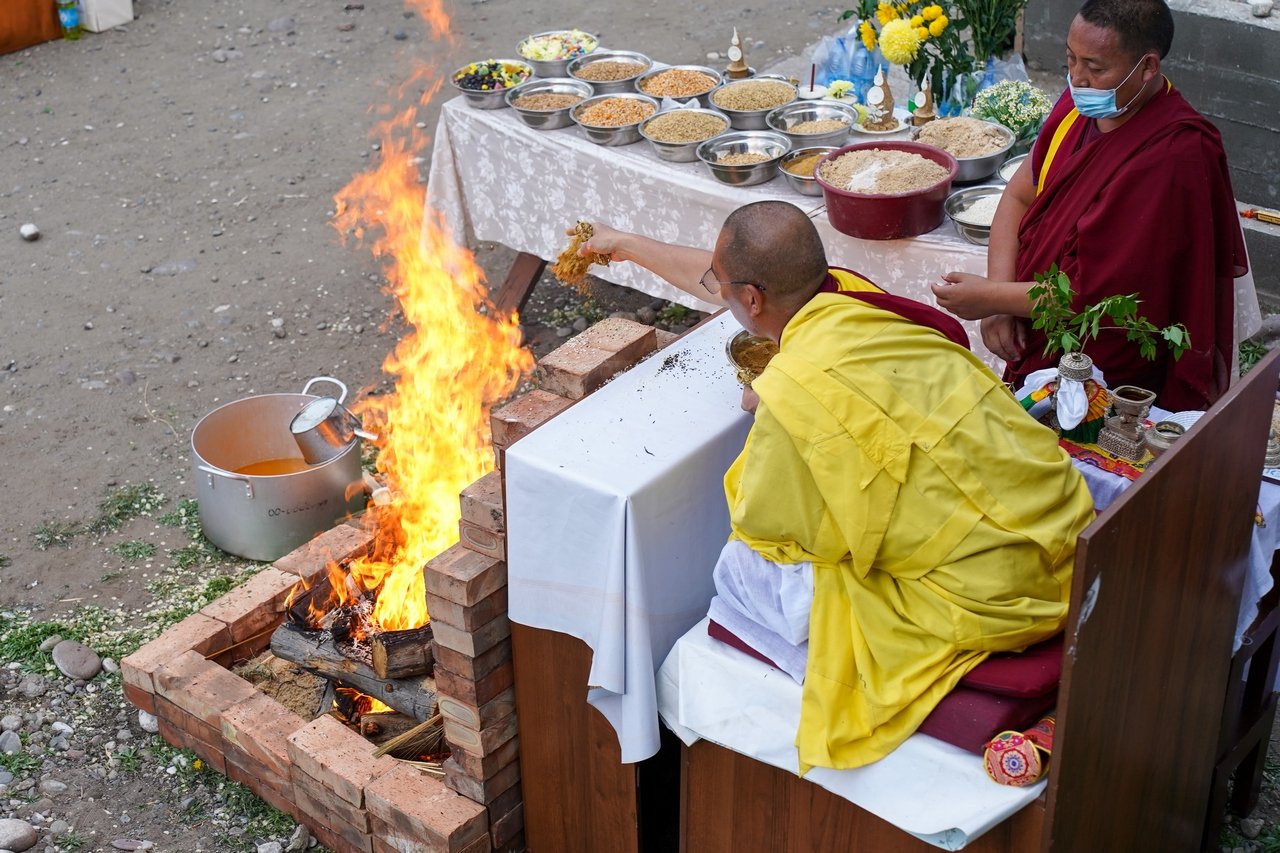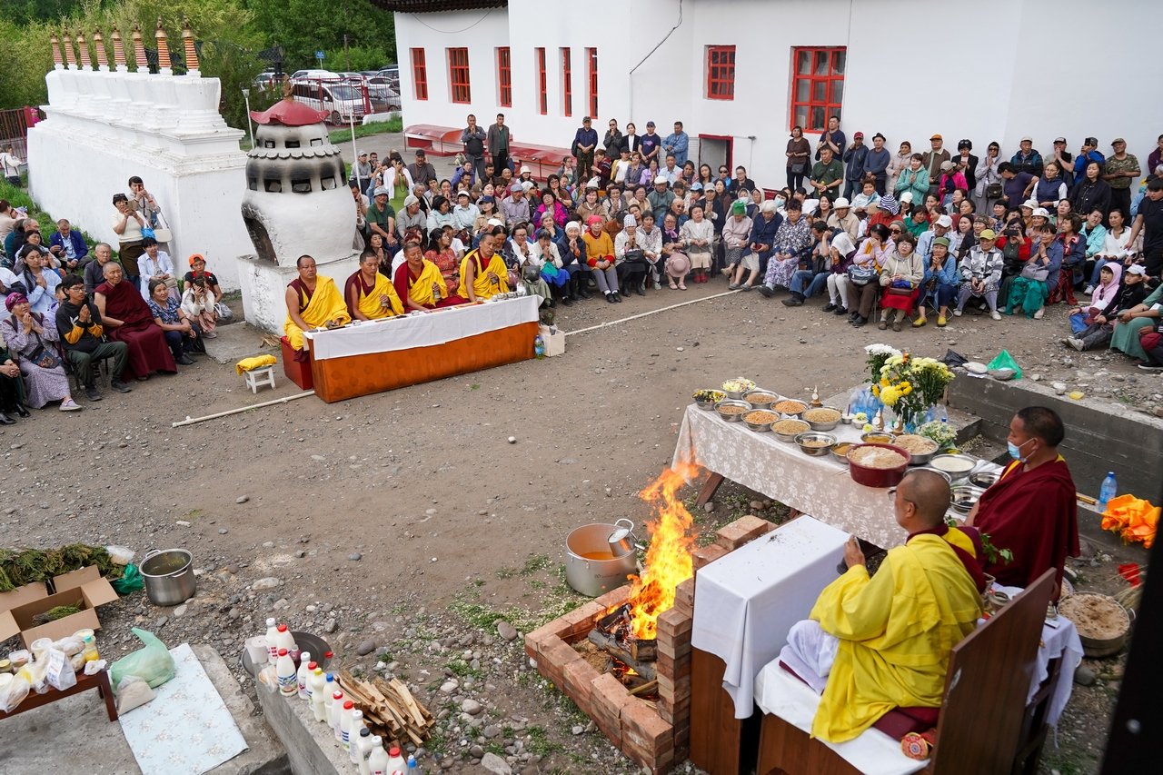 Фото. Монахи Гьюдмеда провели огненную пуджу на территории храма Цеченлинг в Туве