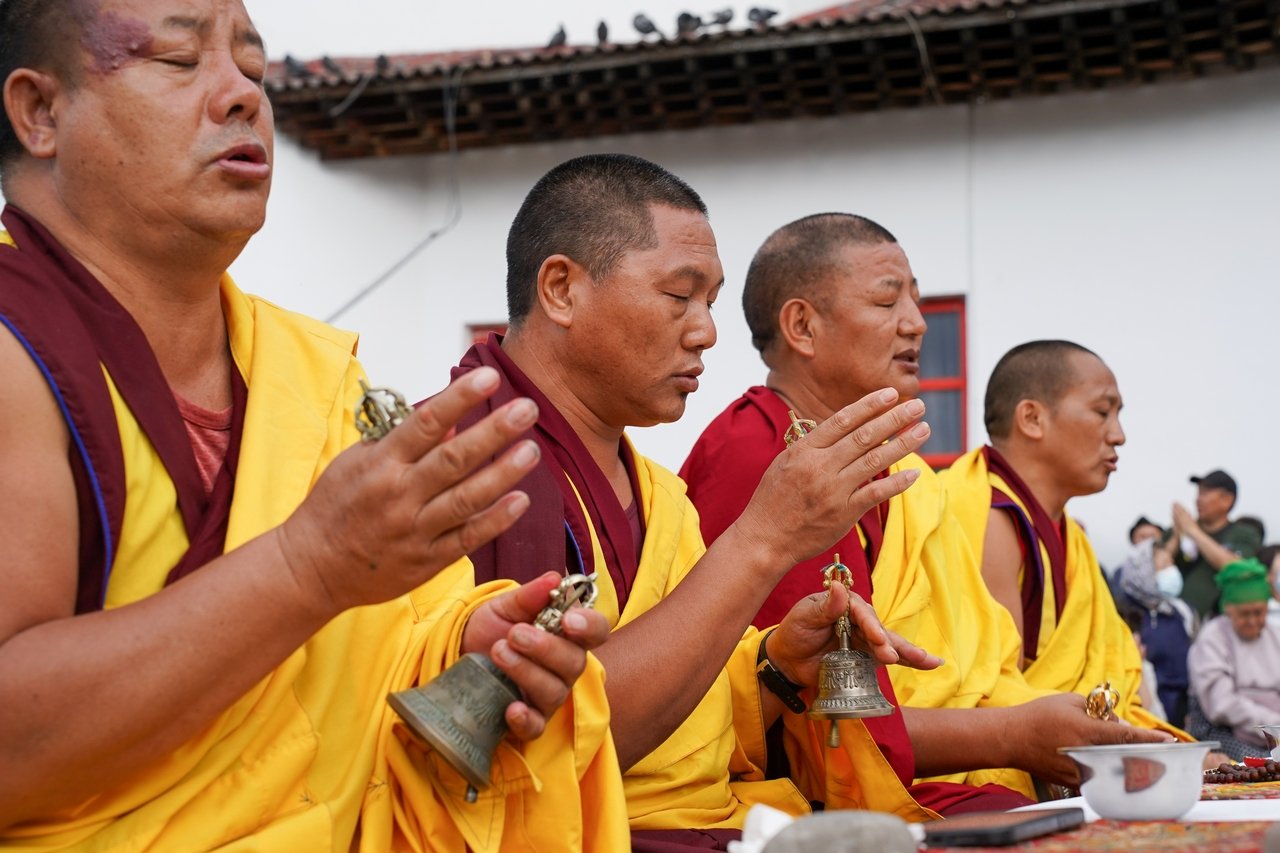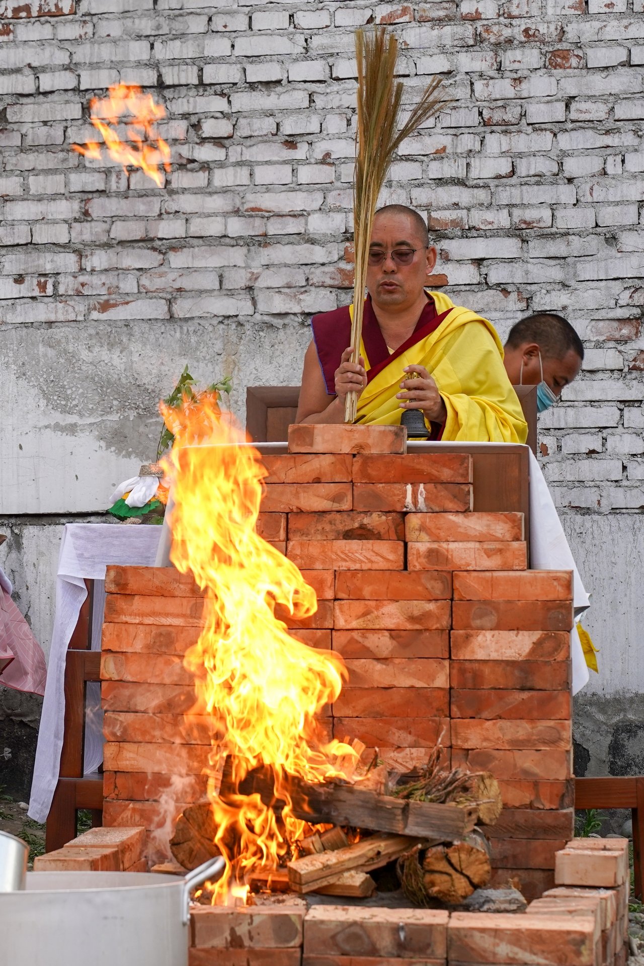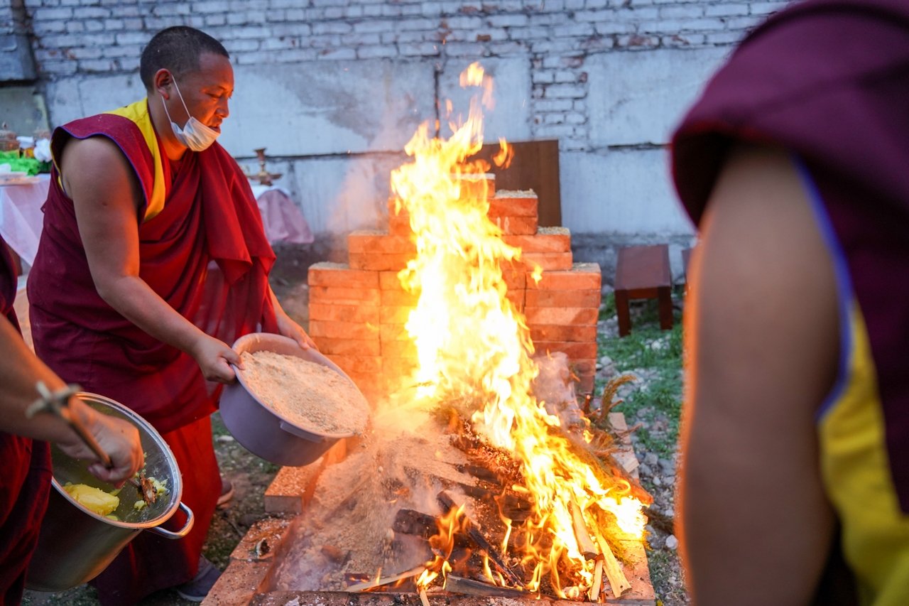 Фото. Монахи Гьюдмеда провели огненную пуджу на территории храма Цеченлинг в Туве