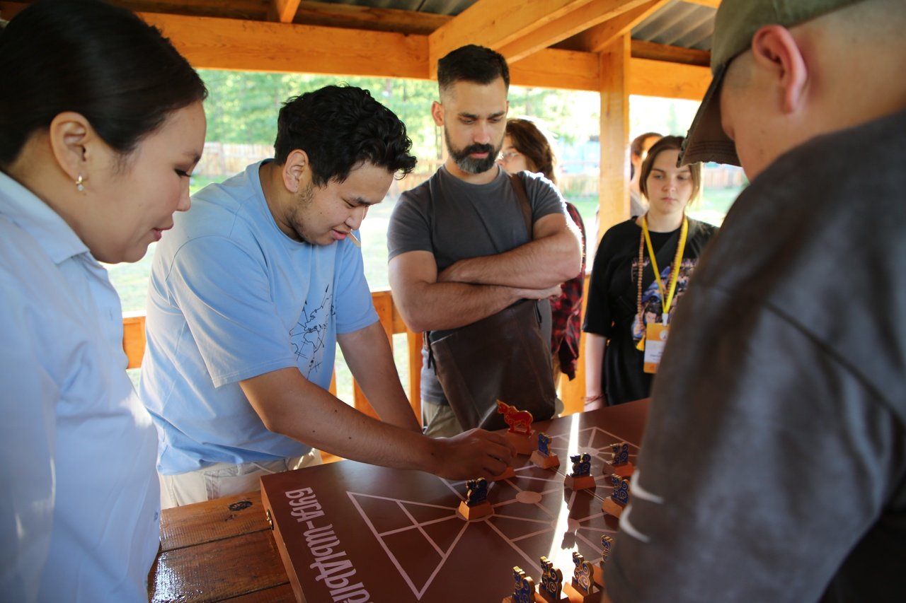 Прошла работа проектных групп. Вечером участники школы посетили мастер-классы: «Тувинское горловое пение» (Игорь Кошкендей) и «Тувинские шахматы: Буга Шыдыраа» (Яна Нан-Хоо).