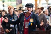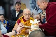 В завершение церемонии Его Святейшеству поднесли большой праздничный торт, после чего прошло красочное представление, включавшее традиционные песни и танцы народов мира.
