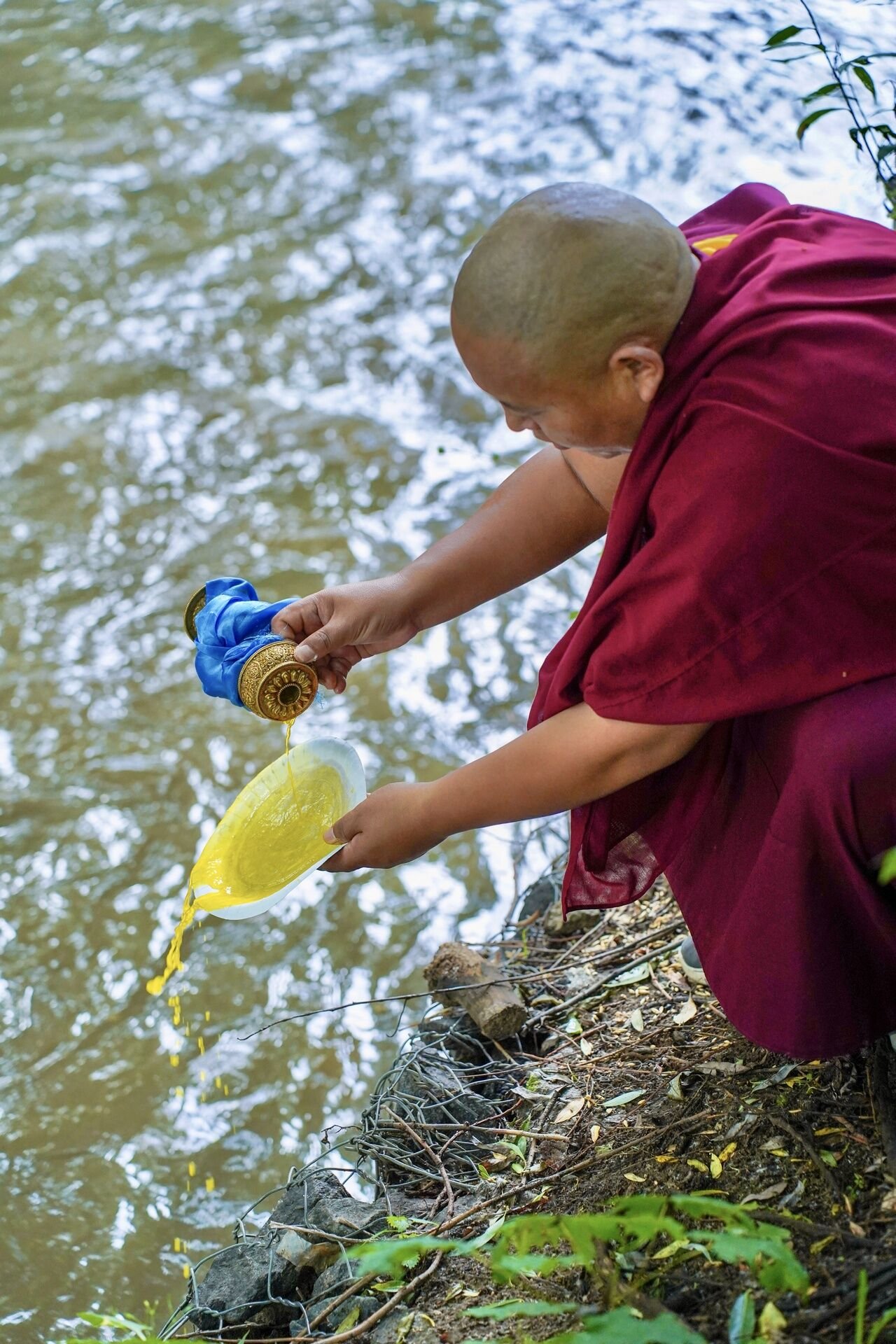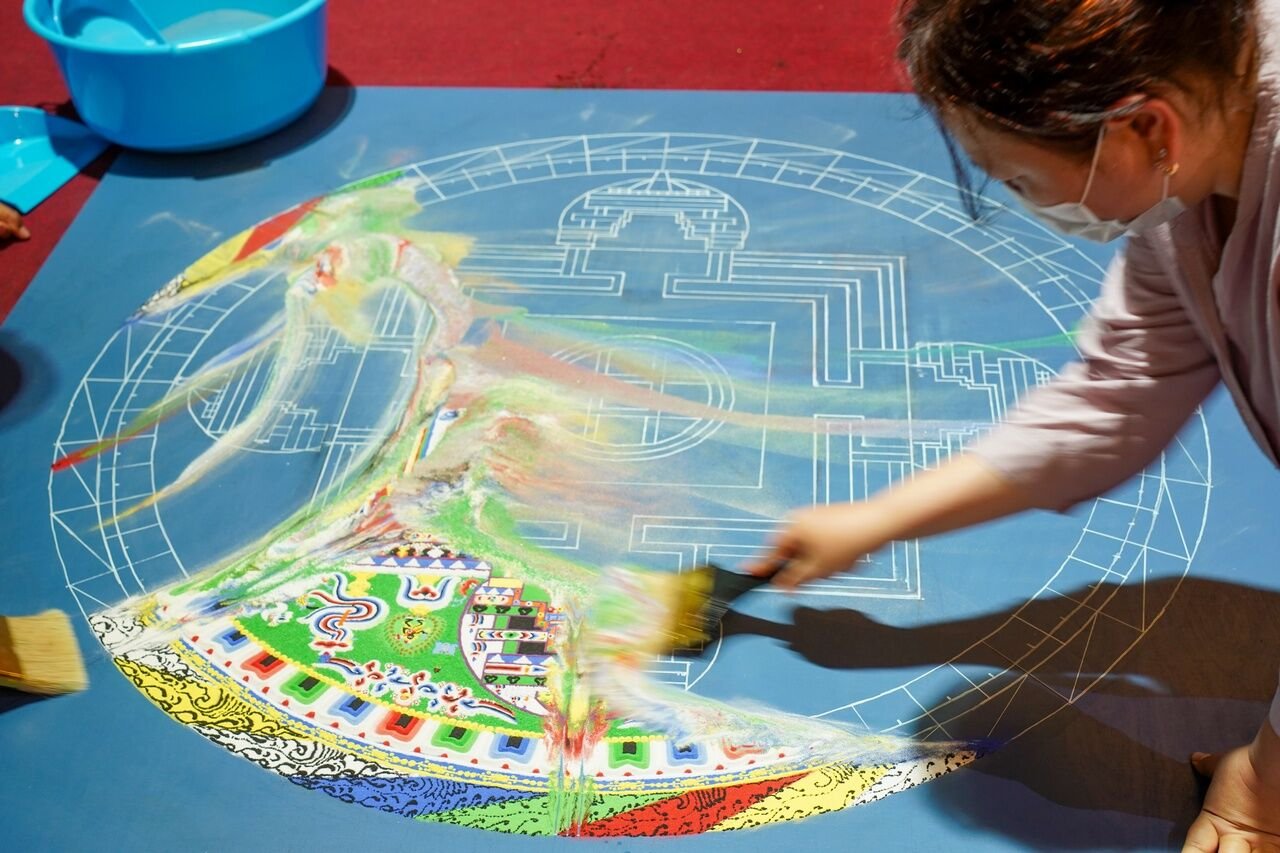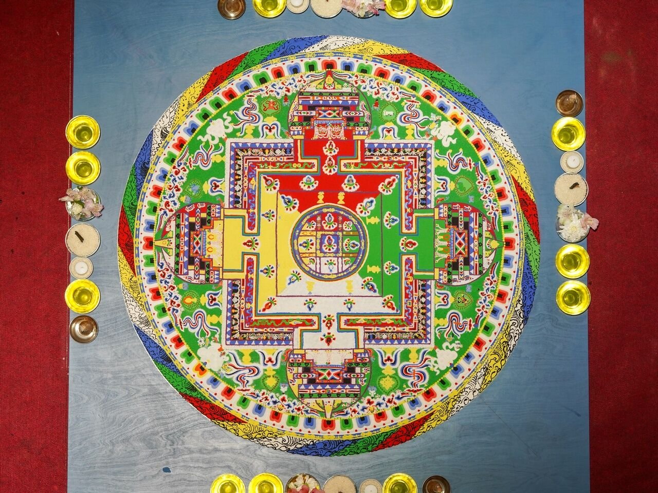 Церемония началась с утреннего ритуала, включавшего благословение священной мандалы и традиционное обхождение вокруг нее. Кульминацией стало само разрушение мандалы – момент, когда тщательно созданный из цветного песка священный символ был церемониально уничтожен в знак напоминания о бренности материального мира.