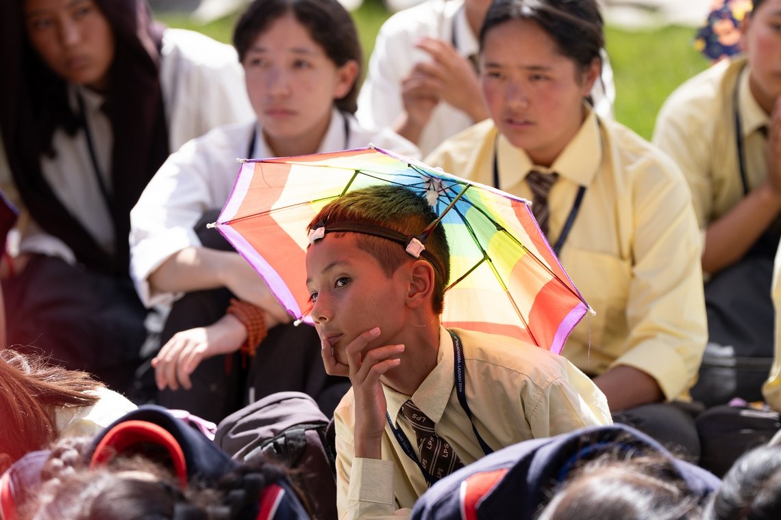 Юные слушатели во время учения Его Святейшества Далай-ламы на площадке Калачакры. Лех, Ладак, Индия. 16 августа 2025 г. Фото: Тензин Чойджор (Офис ЕСДЛ)