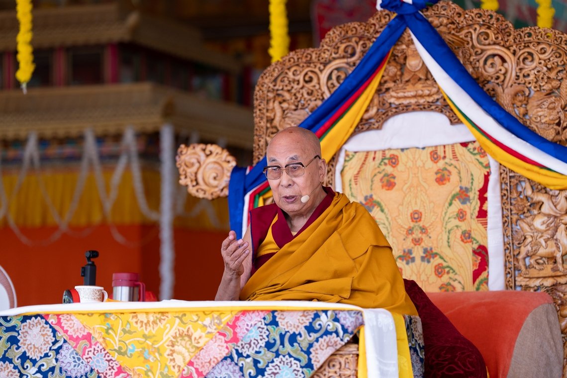 Его Святейшество Далай-лама дарует учение на площадке Калачакры. Лех, Ладак, Индия. 16 августа 2025 г. Фото: Тензин Чойджор (Офис ЕСДЛ)