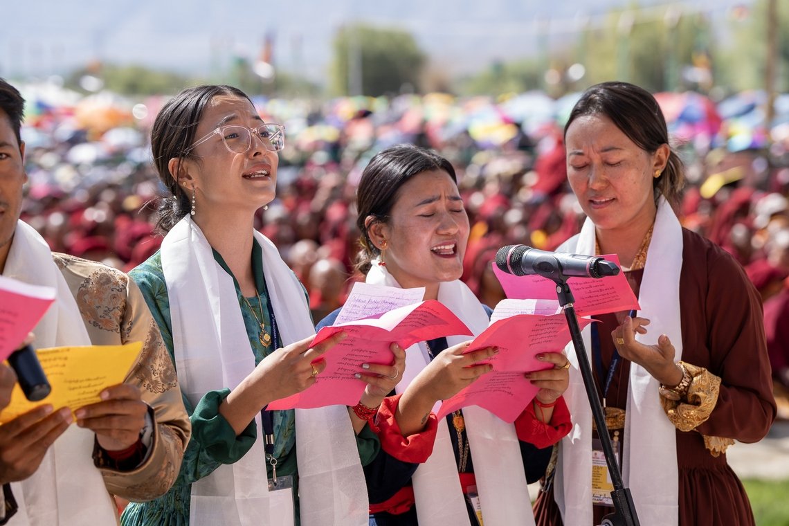 Затем последовала музыкальная пауза: сначала группа ладакских певцов и музыкантов, а затем группа из местной Тибетской детской деревни исполнили песни в честь 90-летия Далай-ламы и вознесли молитвы о его долголетии. Группа из Тибетской детской деревни начала свое выступление с обещания взращивать добросердечие в знак благодарности Его Святейшеству.