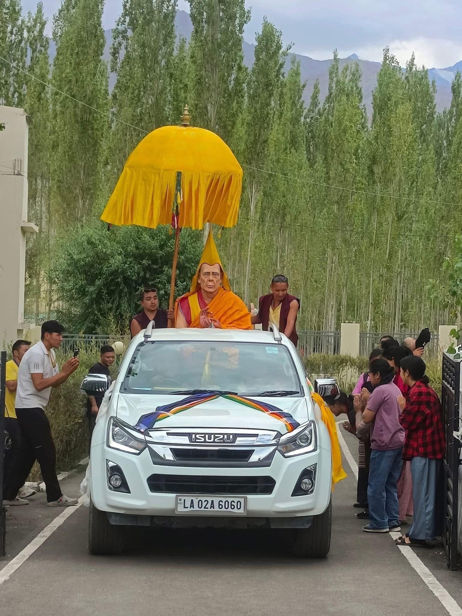 Лех, Ладак, Индия – 15 августа 2025 года в резиденцию Его Святейшества Далай-ламы в Шевацель Пходранге, расположенную в Чогламсаре, было торжественно доставлено святое тело 102-го Гаден Трипы Кьябдже Ризонга Ринпоче Тхуптена Ньимы Лунгтога Тензина Норбу Пэлзангпо.