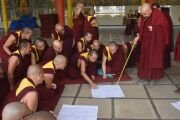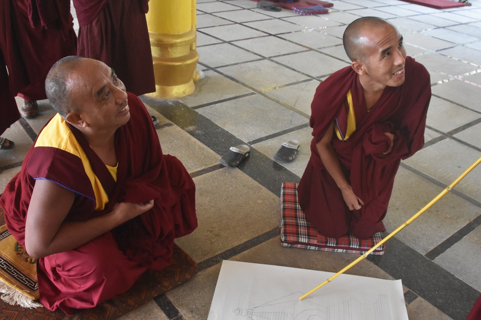 Фото. Экзамен на знание чертежей мандал в монастыре Гьюдмед