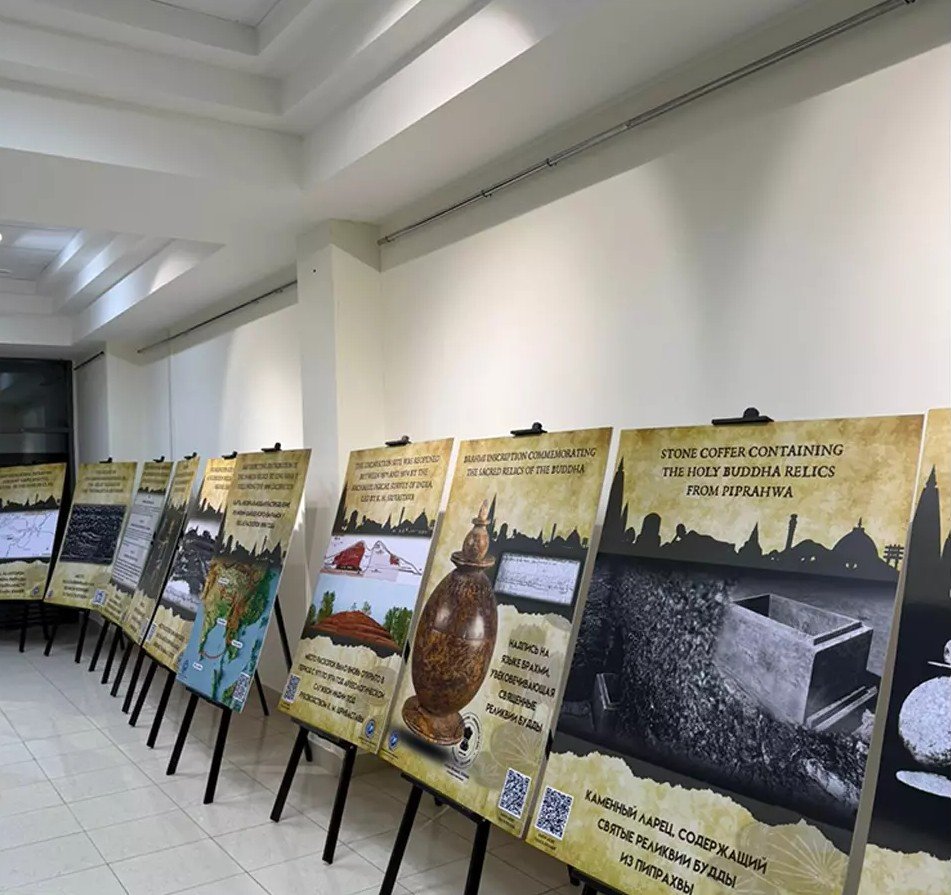 Как уточняется на официальном сайте Национального музея Республики Калмыкия имени Н. Н. Пальмова, на открывшейся вчера выставке «Священное наследие Шакьев: Раскопки и экспозиция реликвий Будды» представлены артефакты, относящиеся к эпохам кушанов, палов, сунгов, сатаваханов и гуптов, демонстрируют ключевые моменты жизни Будды: от его рождения и просветления до первой проповеди и ухода в махапаринирвану. Особое внимание уделено изображениям бодхисаттв Майтреи и Манджушри, выполненным в иконографических стилях Матхуры и Гандхары.