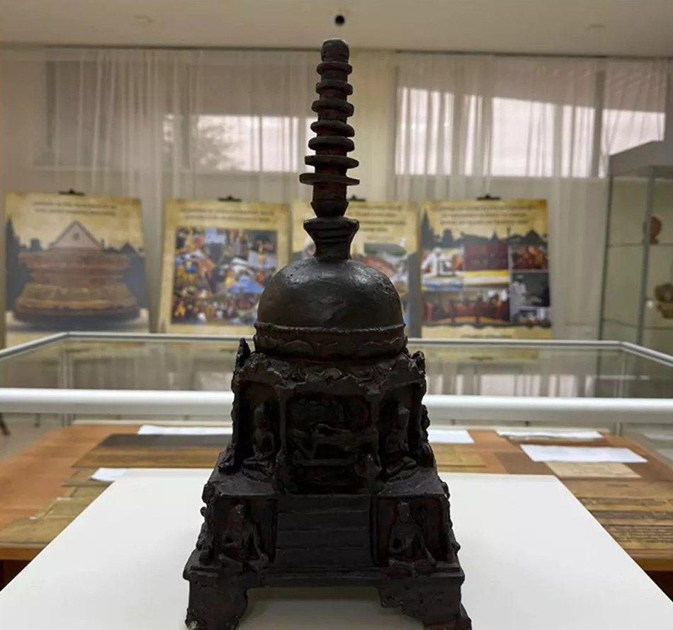 Экспонат выставки «Священное наследие Шакьев: Раскопки и экспозиция реликвий Будды».Фото: Национальный музей Республики Калмыкия имени Н. Н. Пальмова
