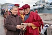 В рамках краткосрочного визита в северную столицу Гьялванг Другпа Ринпоче посетил достопримечательности Санкт-Петербурга и встретился с буддистами города, прочитав лекцию «Как зародить и поддерживать бодхичитту в турбулентном техногенном 21 веке?».
