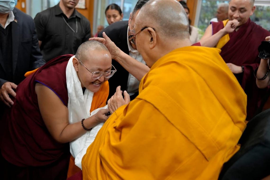 Ани Лобсанг Карма на аудиенции у Его Святейшества Далай-ламы в его резиденции в Дхарамсале, Индия