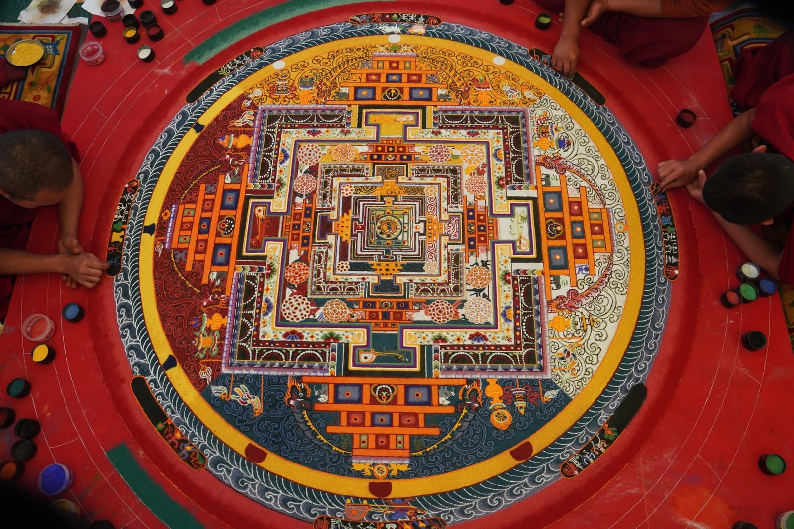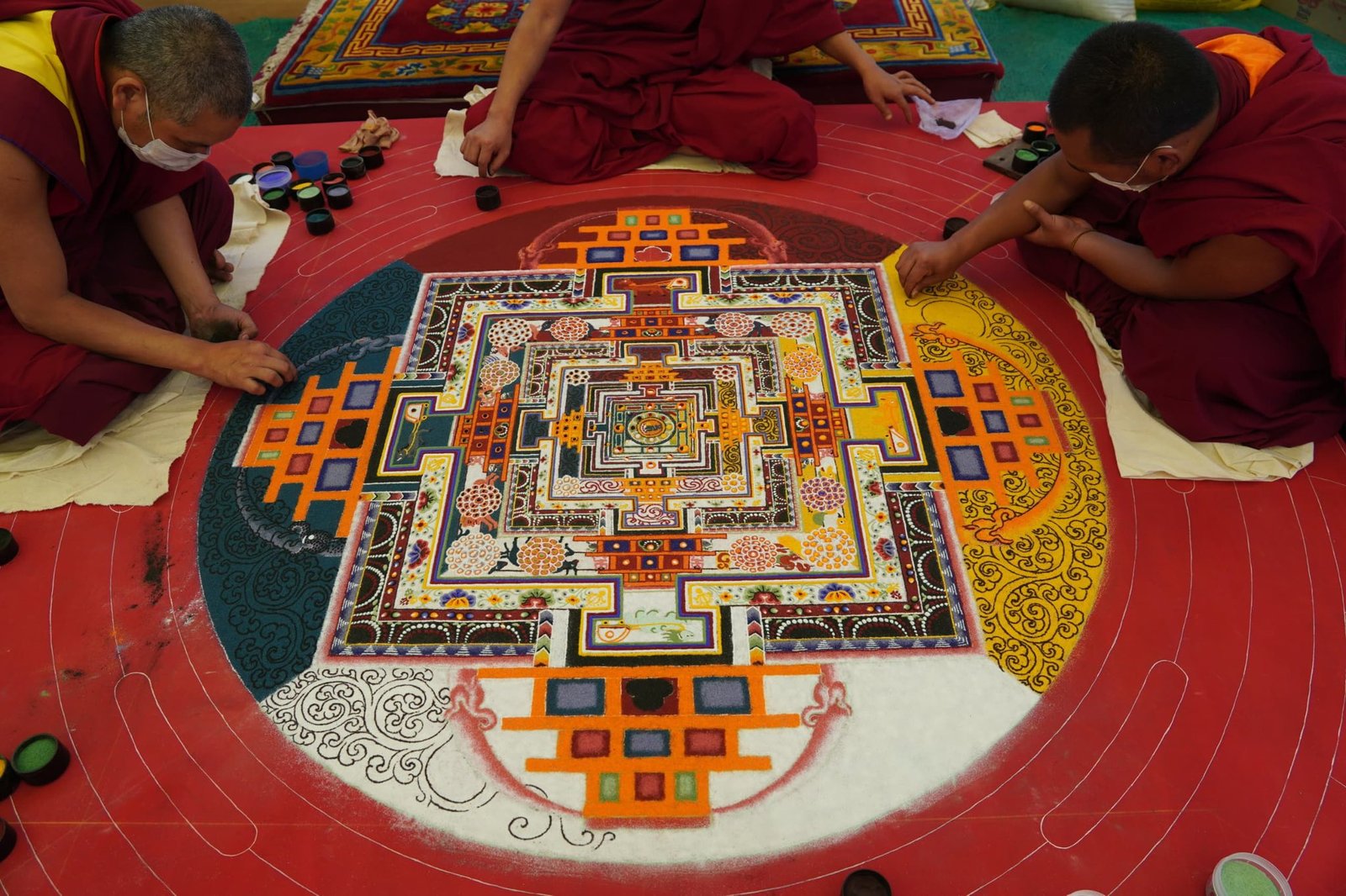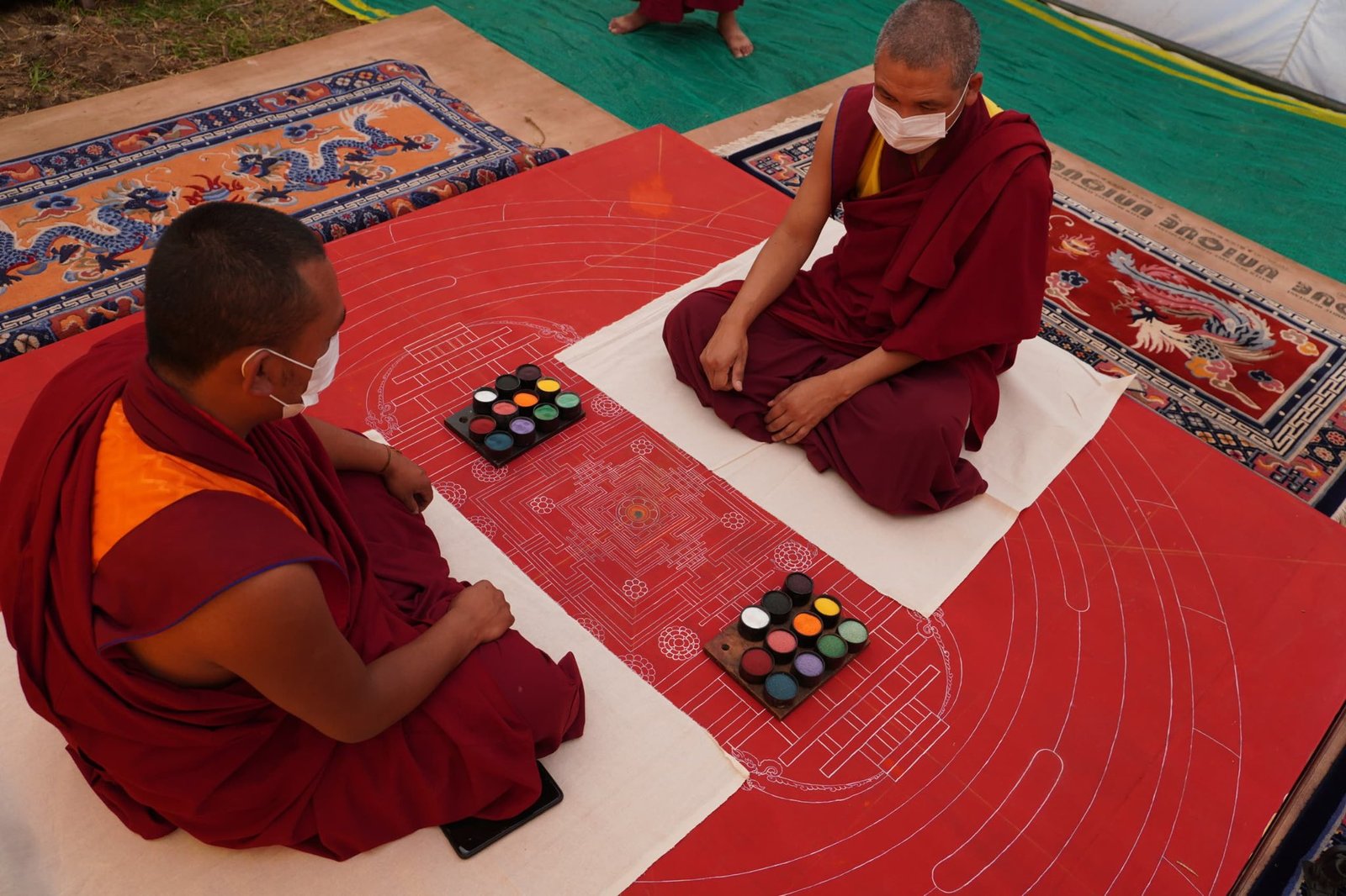 В эти дни монахи завершают строительство мандалы Калачакры, которая будет служить основой для проведения посвящения.