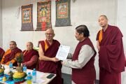 Как сообщалось ранее, в декабре 2024 года Его Святейшество Далай-лама XIV Тензин Гьяцо преподнес в дар новому дугану комплект своего облачения – монашеские одежды и традиционную желтую шапку. «Этот драгоценный дар считается великой реликвией и воплощает благословение и сердечное присутствие самого Его Святейшества», – сообщается на сайте дацана.