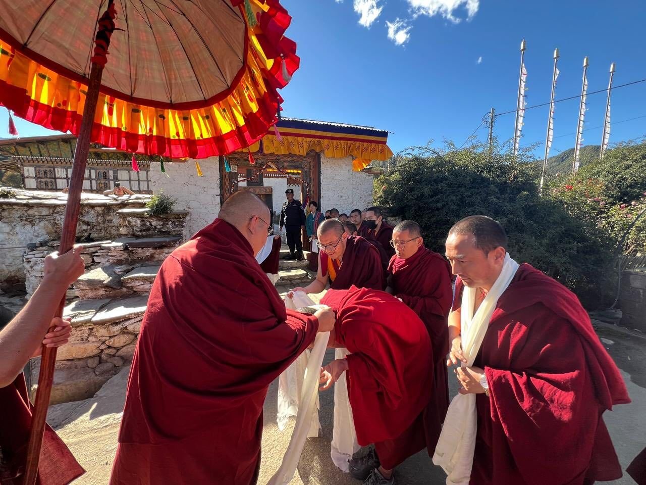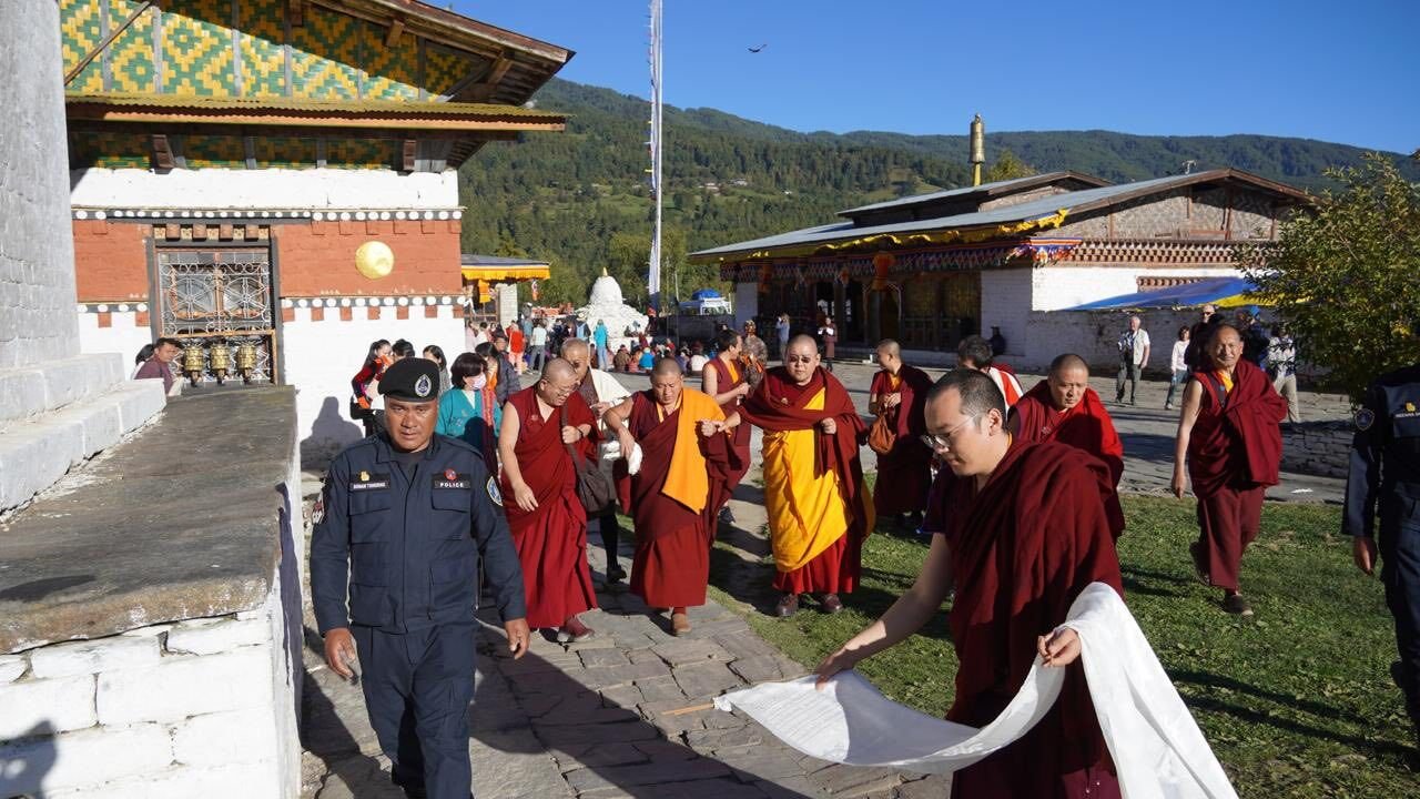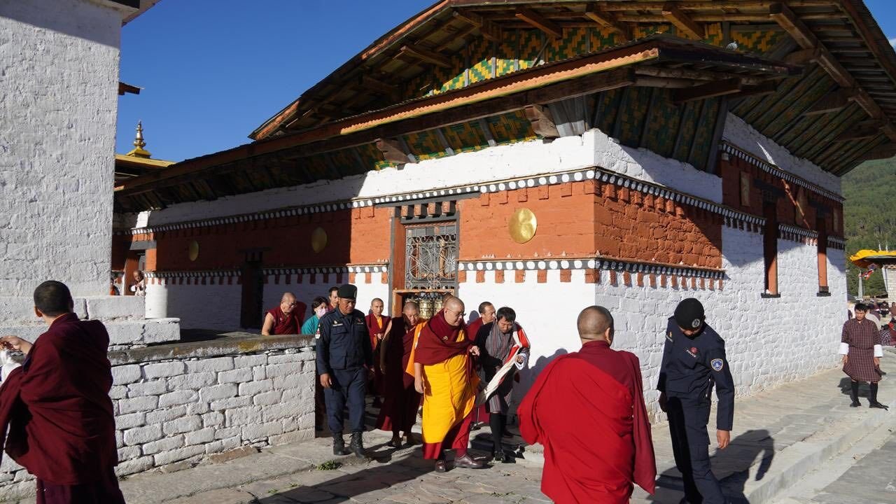 Досточтимый Линг Ринпоче, находясь с визитом в Бутане по случаю проведения «Глобального молитвенного фестиваля за мир», прибыл 6 ноября в регион Бумтанг, где посетил два древних священных храма региона – Джампа лакханг и Курджей лакханг.