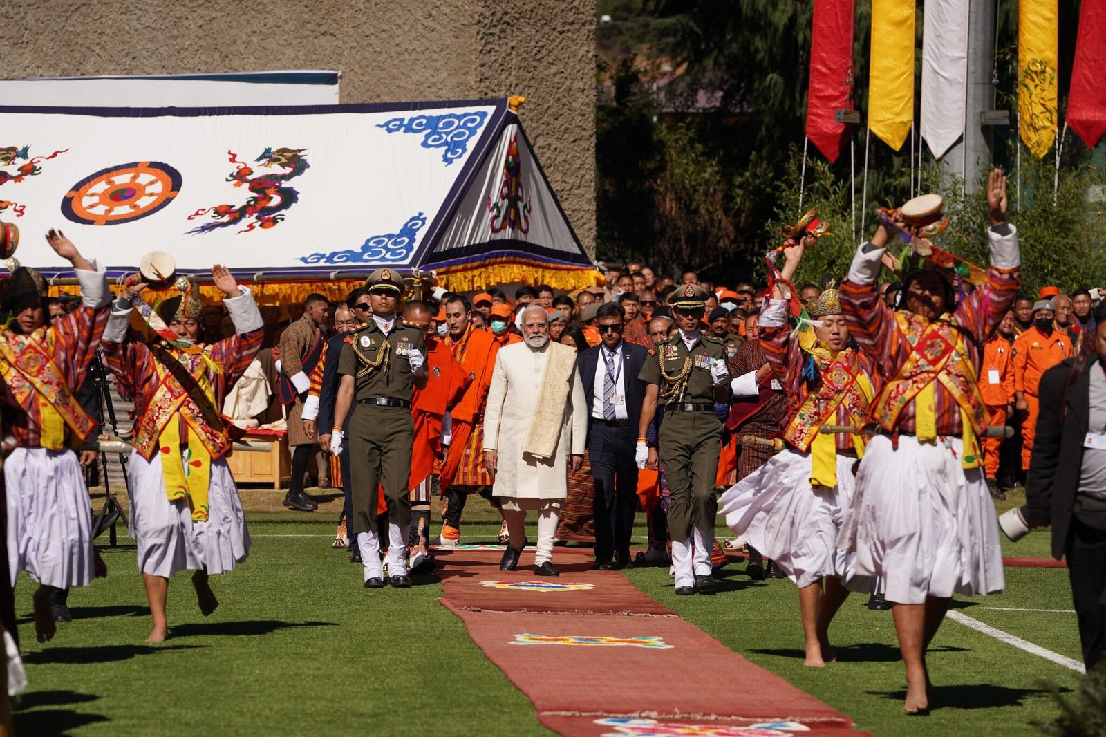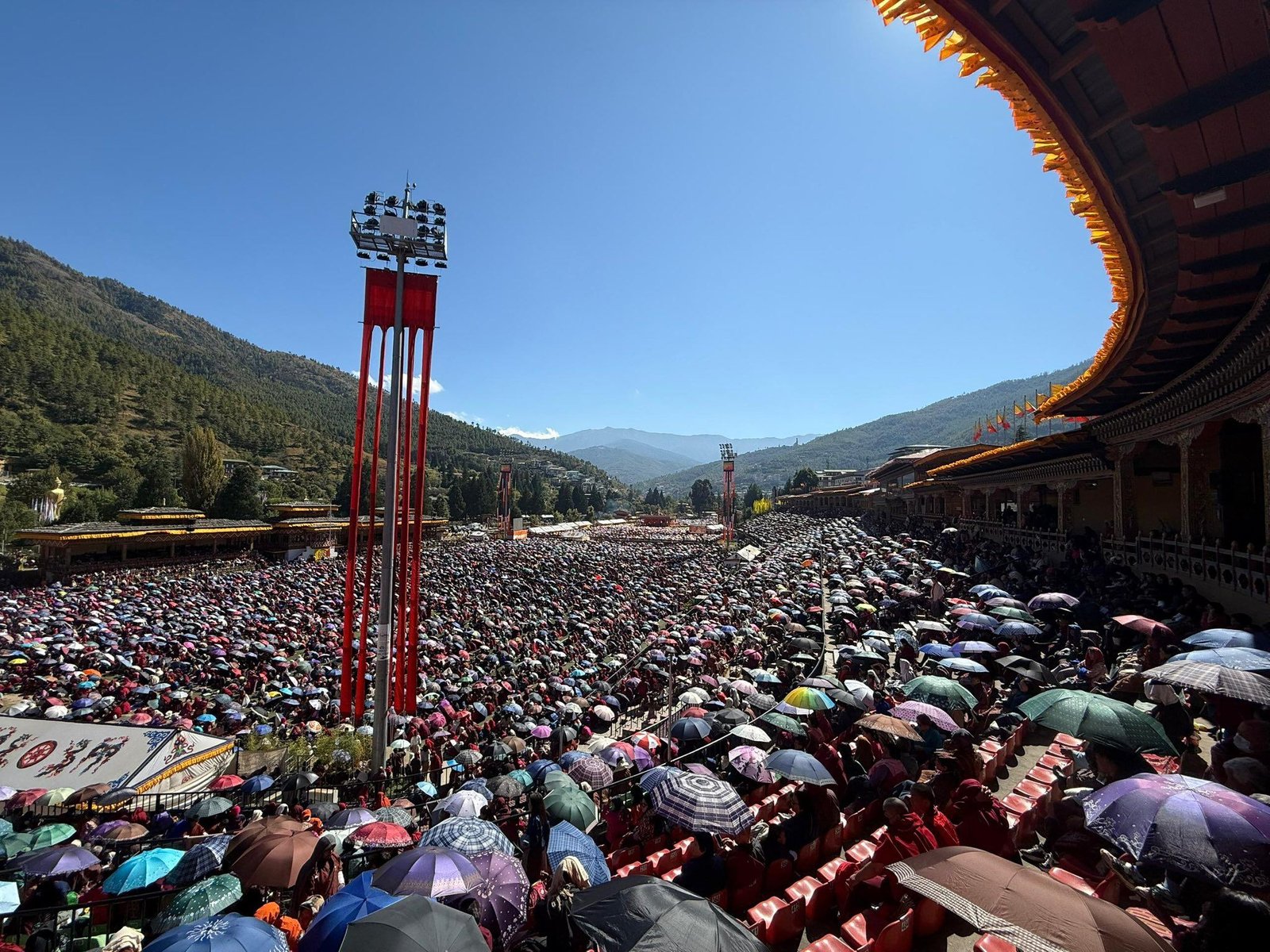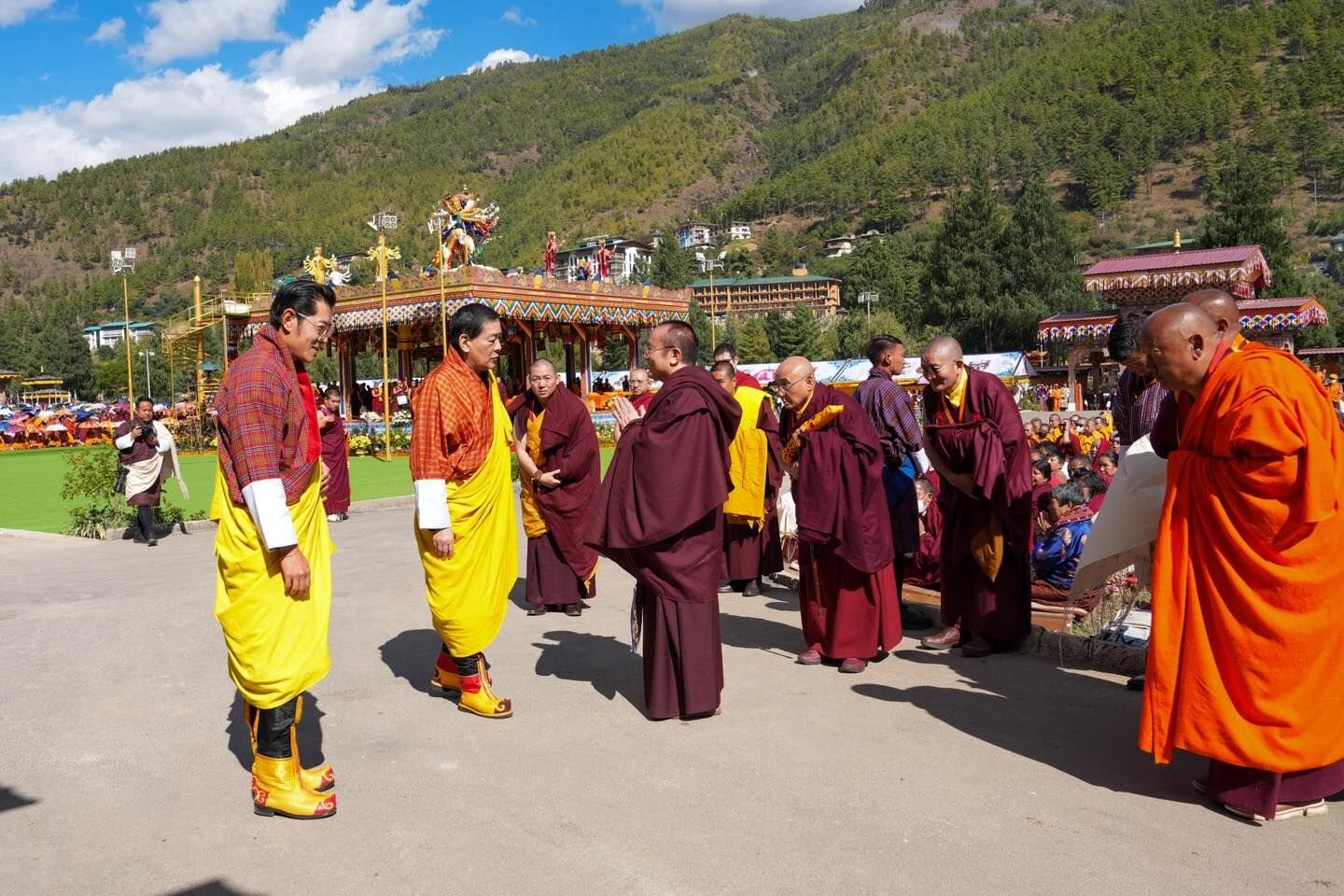 «Празднования стали событием, объединившим весь Бутан, – сообщает пресс-служба короля Бутана, – королевскую семью, правительство и более 27 000 человек, заполнивших трибуны, многие из которых пришли на стадион еще накануне вечером. К празднованиям присоединились иностранные гости, в том числе послы и главы международных организаций, а также буддийские мастера со всего мира, которые прибыли в Бутан для участия в молитвенном фестивале за мир во всем мире». Специальным гостем события стал премьер-министр Индии Нарендра Моди, прибывший с кратким визитом в Бутан.