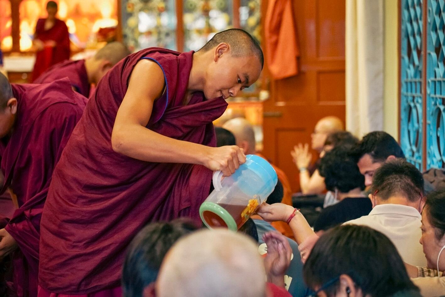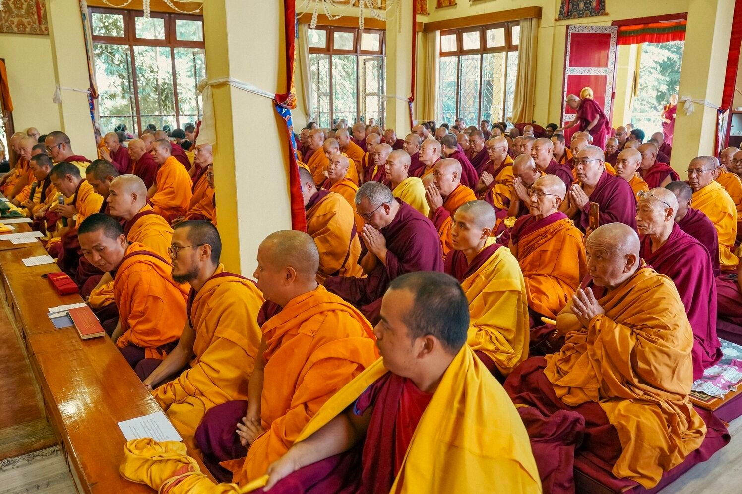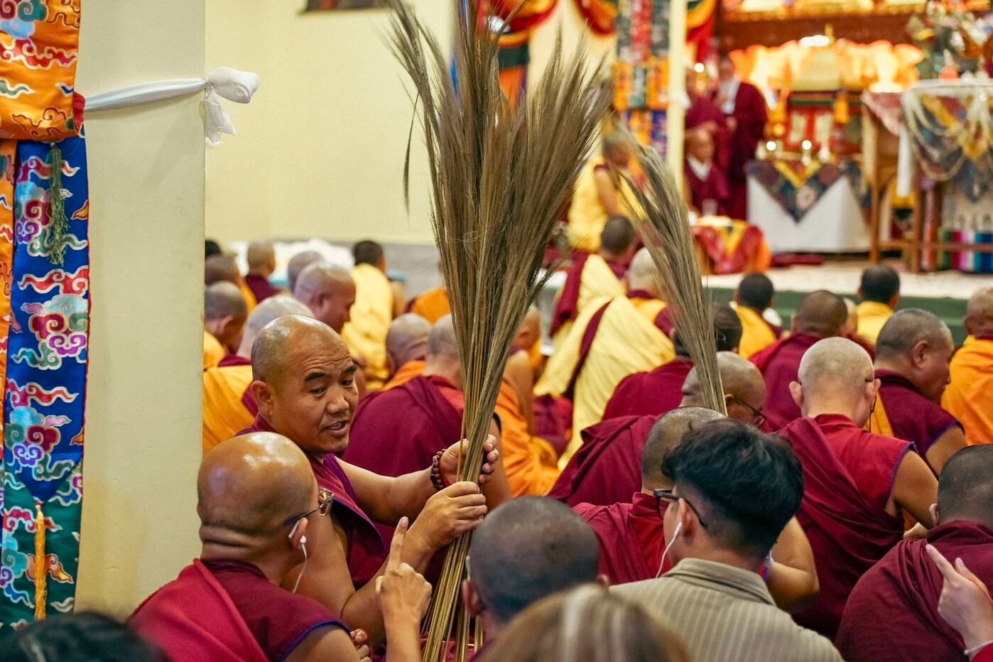 В первый день прошли предварительные церемонии к посвящению Гухьясамаджи — одной из важнейших тантр традиции гелуг. В течение пяти дней Ринпоче даст три главных посвящения: Гухьясамаджи, Чакрасамвары в традиции Луипы и Тринадцати божеств Ваджрабхайравы.