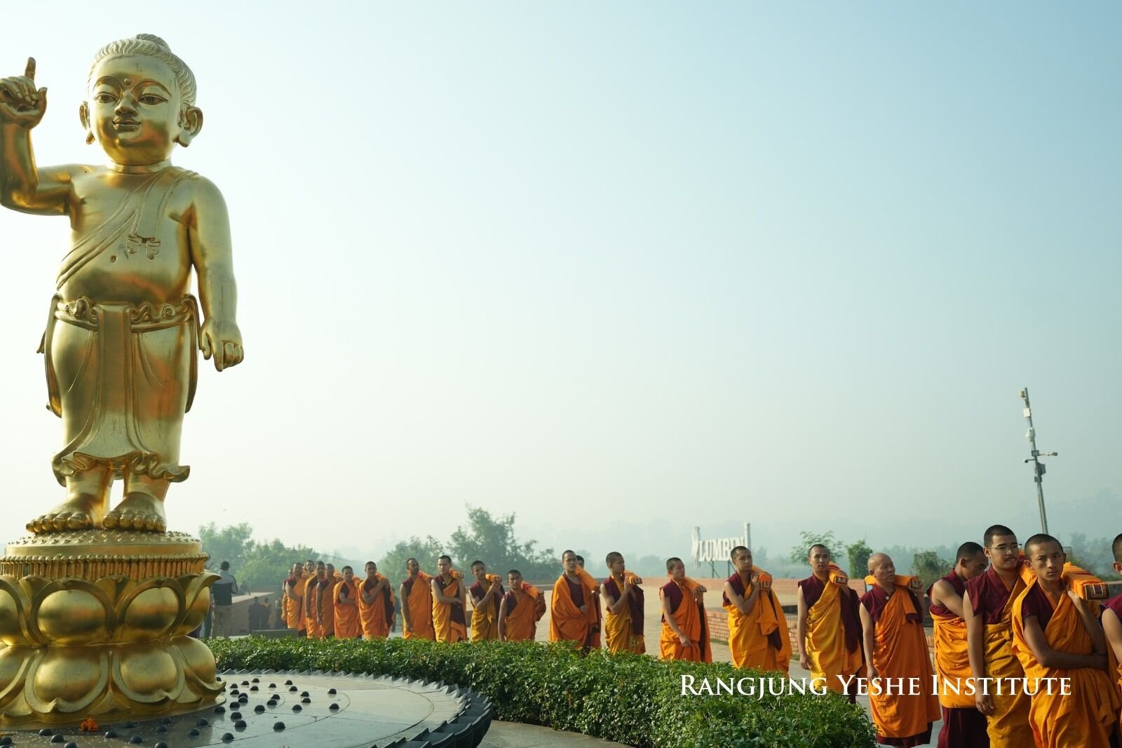 Чокьи Ньима Ринпоче совместно с монашеской сангхой со всего мира, представляющей традиции Тхеравады, Махаяны и Ваджраяну, собрались в Храме Тысячи Будд в Лумбини в день буддийского праздника Лхабаб Дючен, отмечающий также первую годовщину с момента открытия храма.