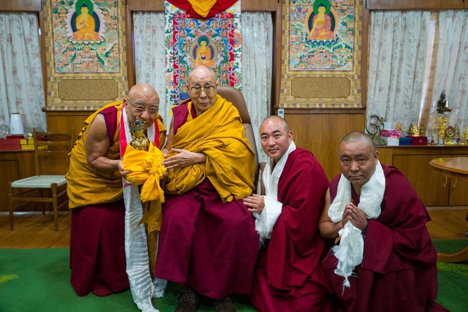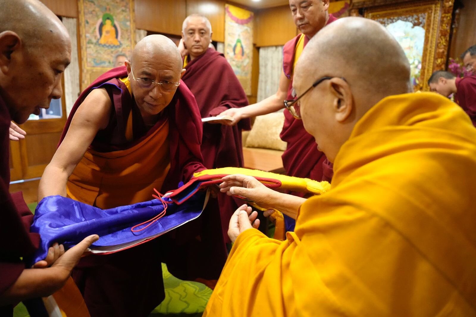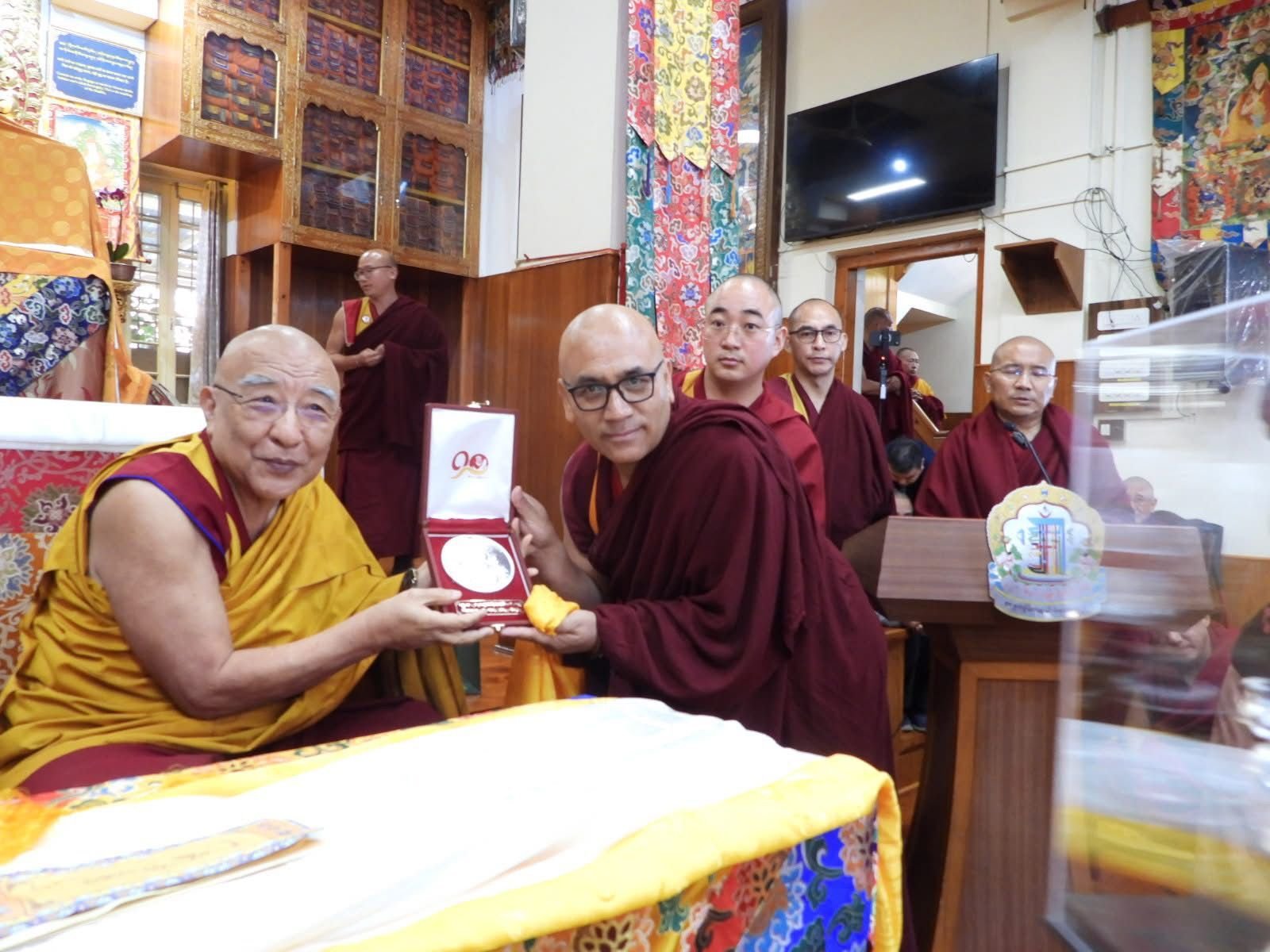 Фотографии церемонии выражения благодарности бывшему настоятелем и аудиенции у Его Святейшества Далай-ламы: སེར་བྱེས་ བྱ་བྲལ་ ཁང་ཚན།, Ven. Thamthog Rinpoche