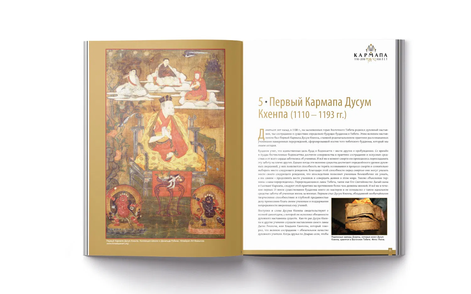 Альбом с текстами и фотографиями посвящён 900-летию со дня рождения Первого Кармапы Дусума Кхенпы – основателя и первого главы линии тибетского буддизма карма кагью. В нем в контексте развития буддизма в Индии и Тибете приводятся краткие биографии всех Кармап, а также описания связанных с ними традиций. Альбом был создан в 2010 году под руководством Его Святейшества 17-го Гьялванга Кармапы.