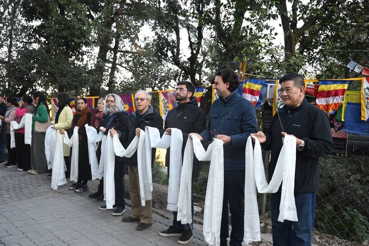 Многочисленные последователи Его Святейшества, в том числе местные жители и паломники из разных стран мира, выстроились вдоль дороги от его резиденции до аэропорта Кангры. Провожая духовного лидера, они совершали традиционные подношения – белые шелковые шарфы-хадаки, благовония и цветы.