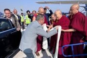 Представляем вашему вниманию несколько кадров отъезда духовного лидера из Дхарамсалы и прибытия в Дели.