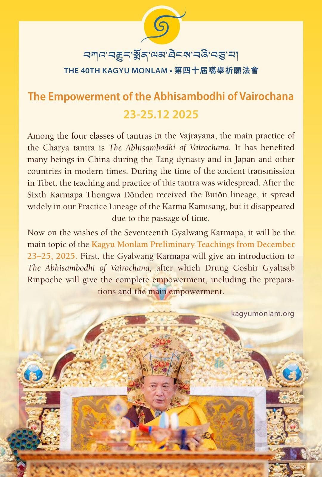 Досточтимый Гошир Гьялцаб Ринпоче возглавит предстоящий 40-й Кагью монлам, который начнется в Бодхгае 22 декабря, в день годовщины паринирваны Первого Кармапы Дусума Кхьенпы. В ходе монлама Его Святейшество Гьялванг Кармапа дарует онлайн-учения, Гьялцаб Ринпоче – посвящение Абхисамбодхи Вайрочаны. На территории площадки Кагью монлама начались подготовительные работы, включая организацию лагеря, для проживания гостей из числа монашеской сангхи и мирян, прибытие которых ожидается в ближайшие дни Подробнее о Кагью монламе.