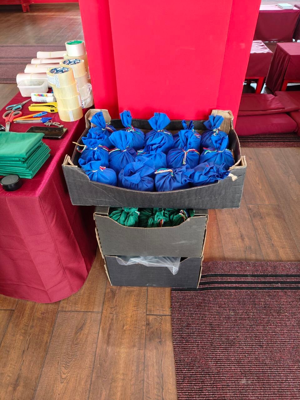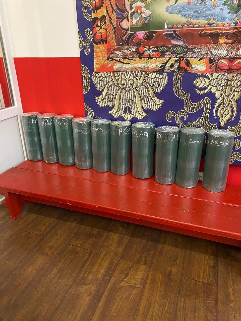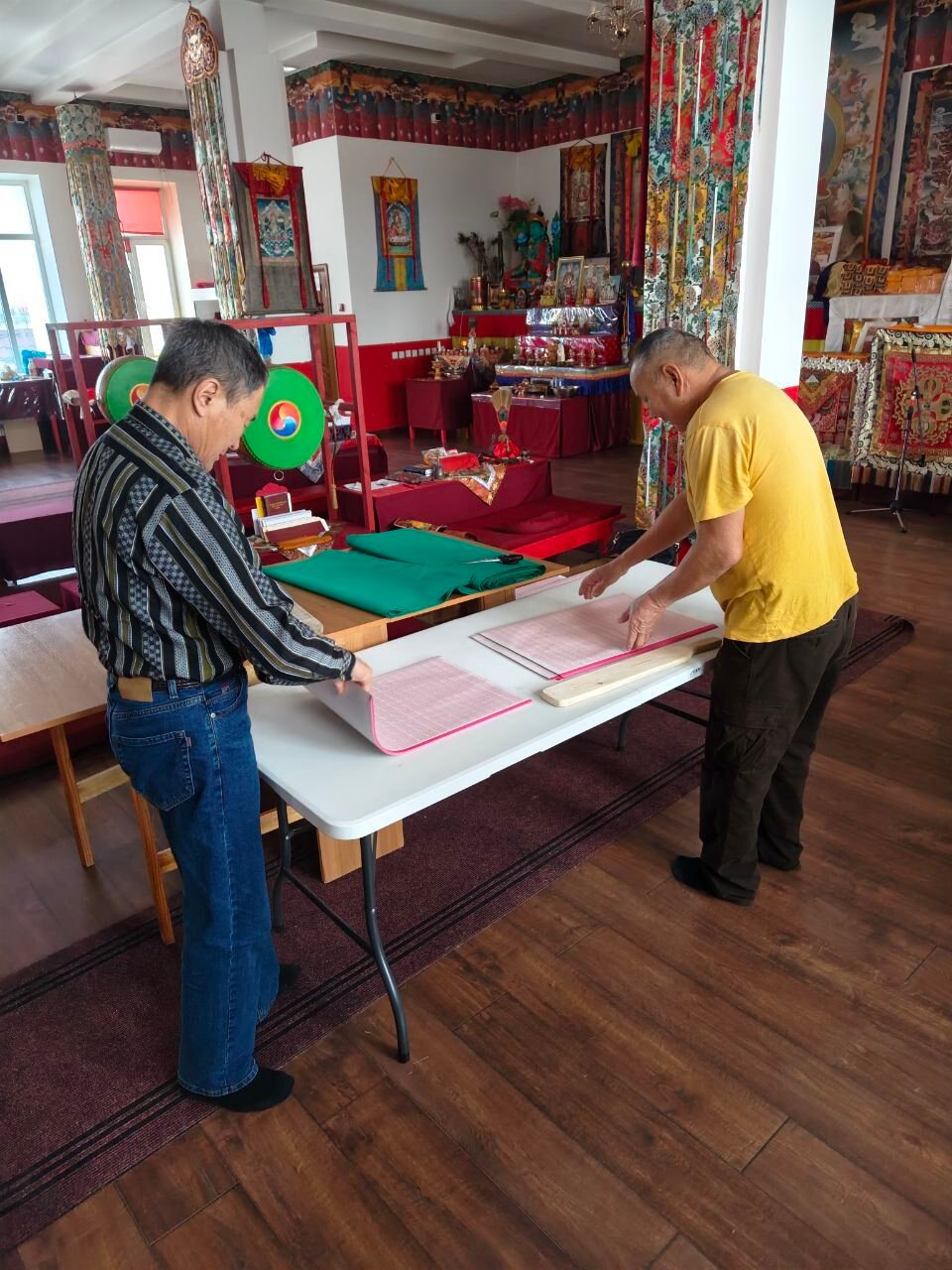 Начиная с 3 января, каждый день с 11:00 в хуруле начинается работа по подготовке свернутых в тугие свитки мантр (зунгов) для закладки в статуи. Уже завершили работу по подготовке мешочков с полынью, и продолжается работа по упаковке санга.