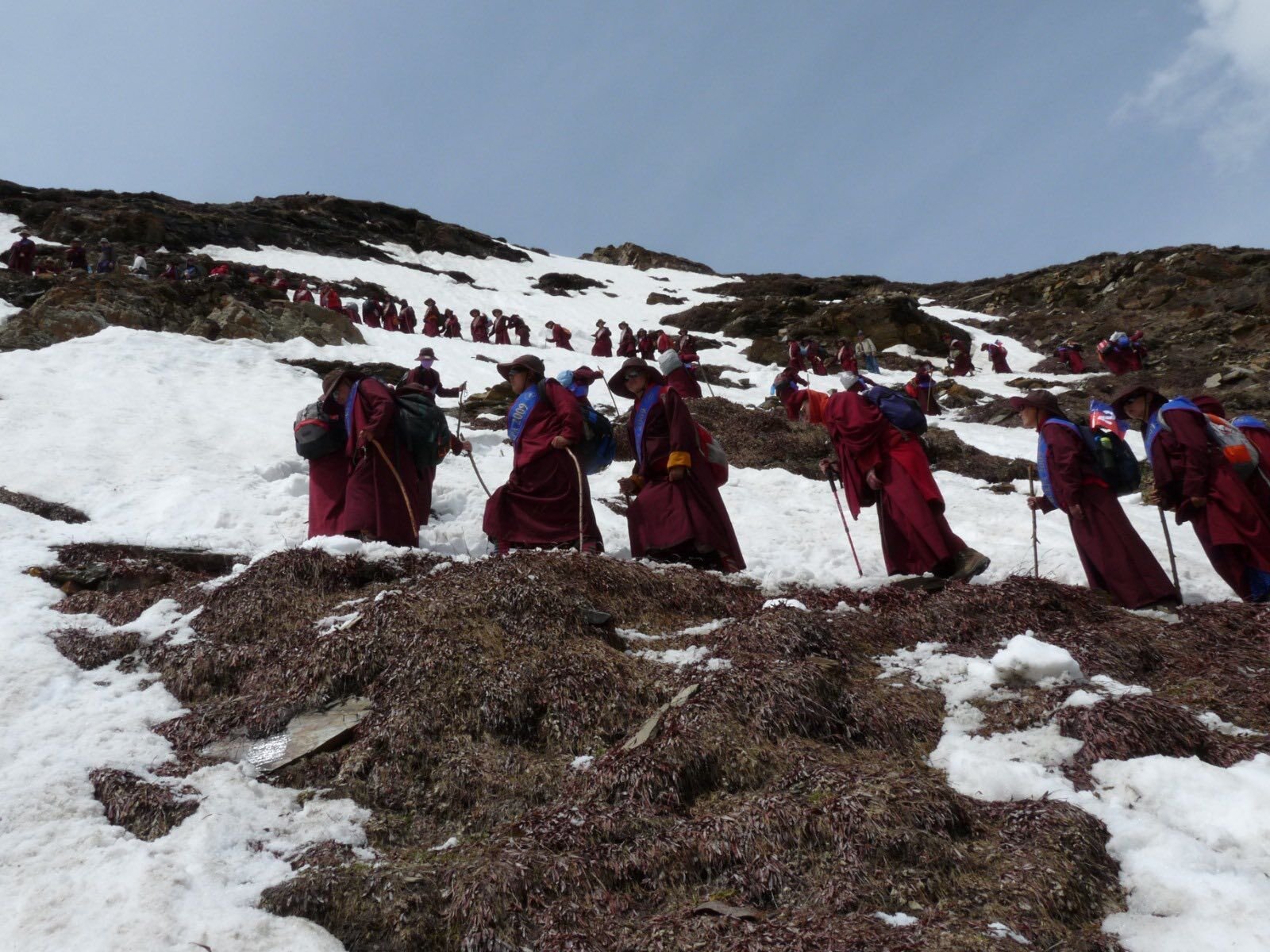 А сейчас мы смотрим на этих монахов, что шли месяцами, преодолевая многотысячный путь босяком, без какого-либо новомодного оборудования. Не то что мы! У нас было все необходимое современное оборудование – рюкзаки и удобная обувь, – и при этом мы до крови натирали плечи лямками рюкзаков, а ноги болели от множества мозолей.