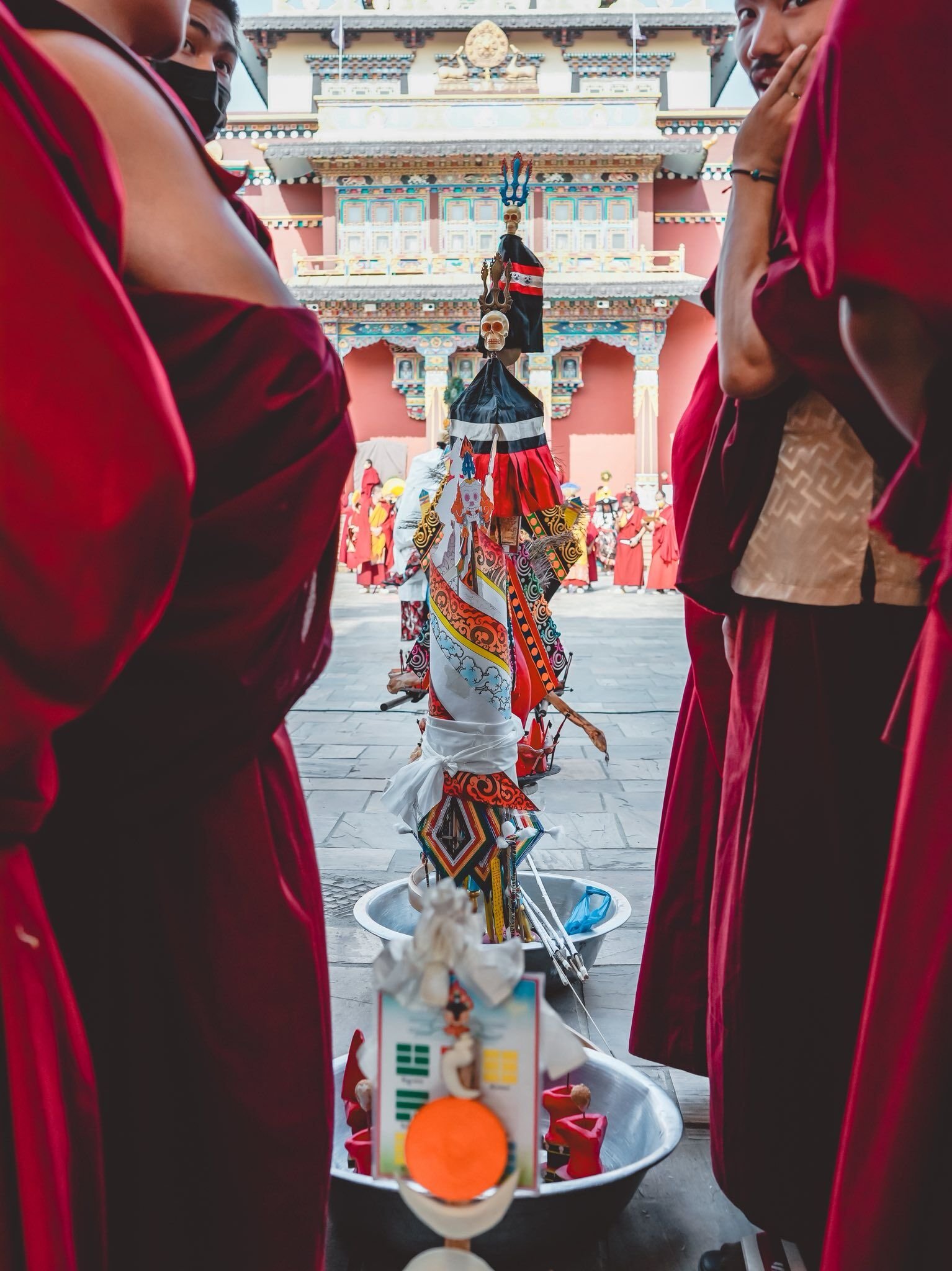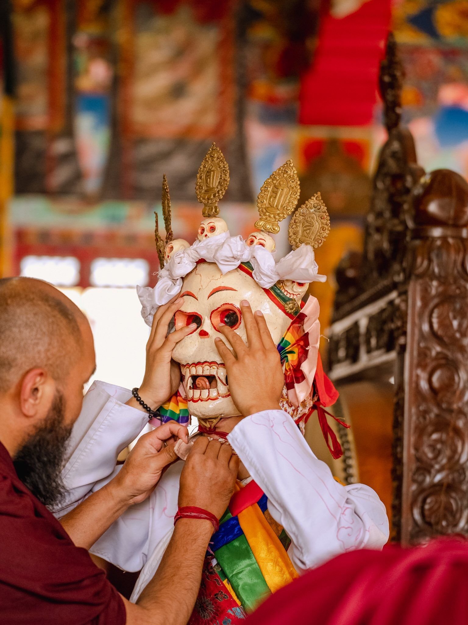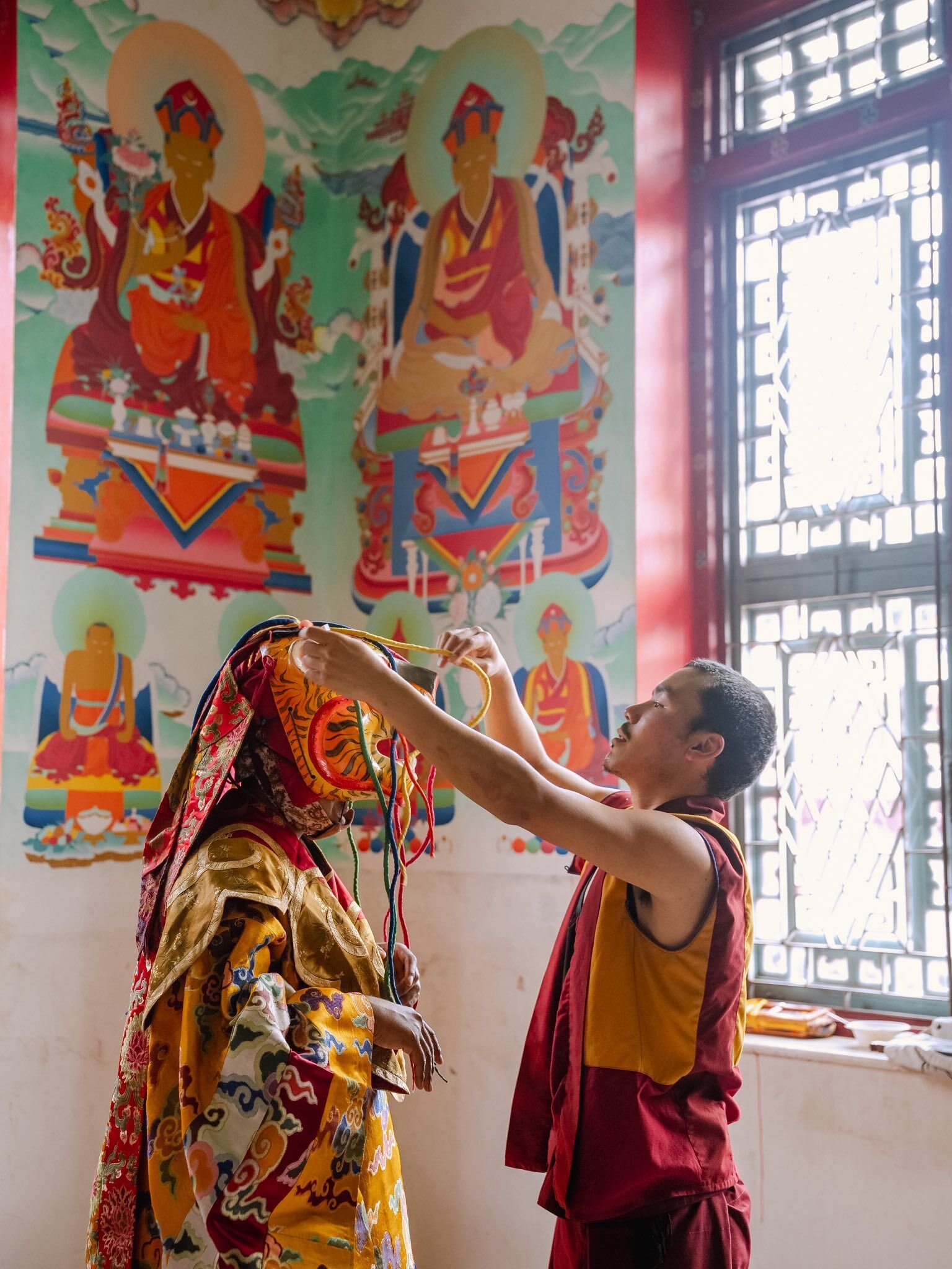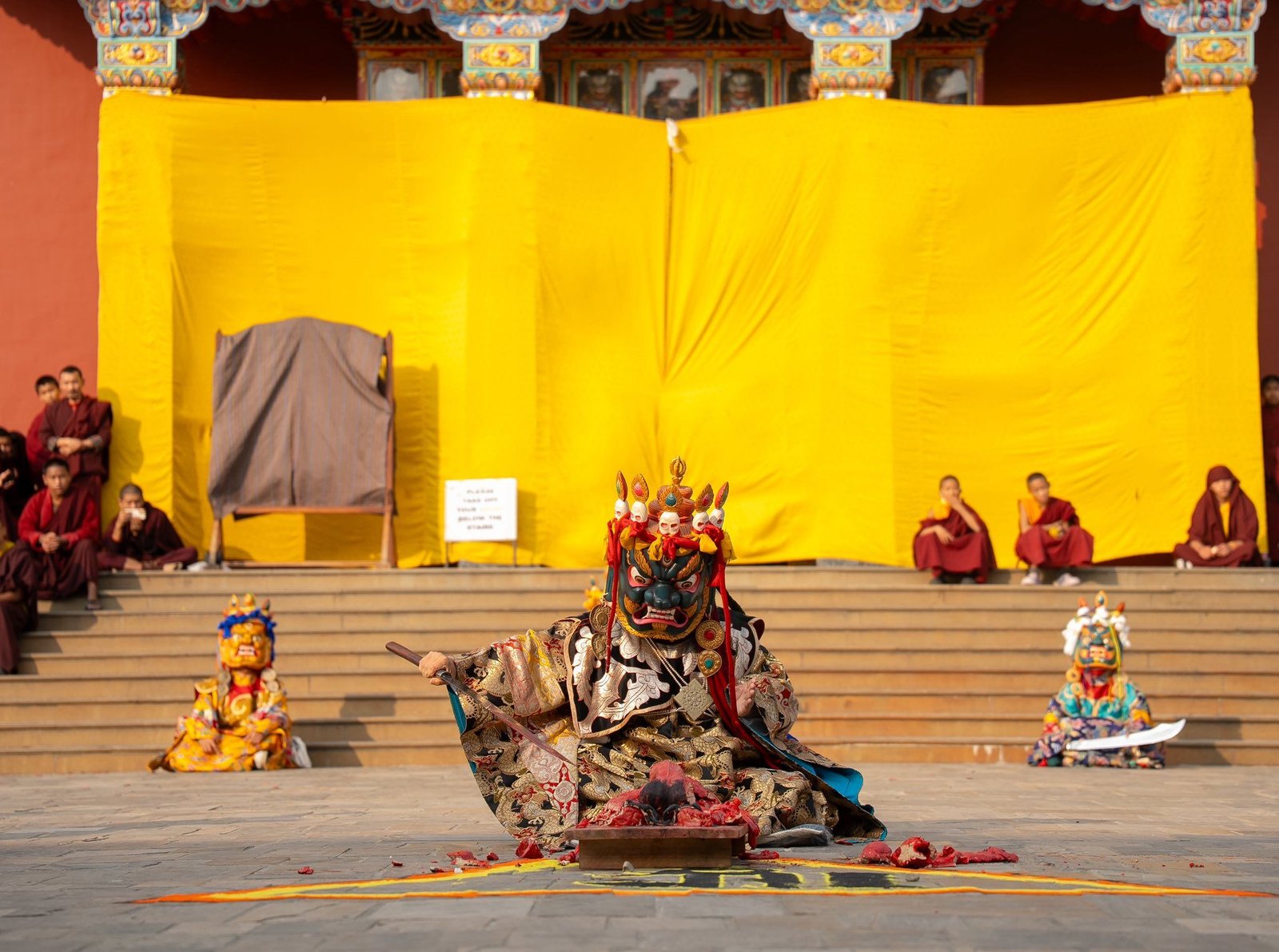 Вчерашний день стал кульминацией этого обширного ритуала. Совершая предновогодний ритуал гутор, мастер церемонии и монахи вышли во внутренний двор монастыря, чтобы исполнить священные танцы в костюмах божеств. Кульминацией ритуала стало ритуальное «бросание торма» — подношений, которые символически забирают с собой все беды и омрачения уходящего года.