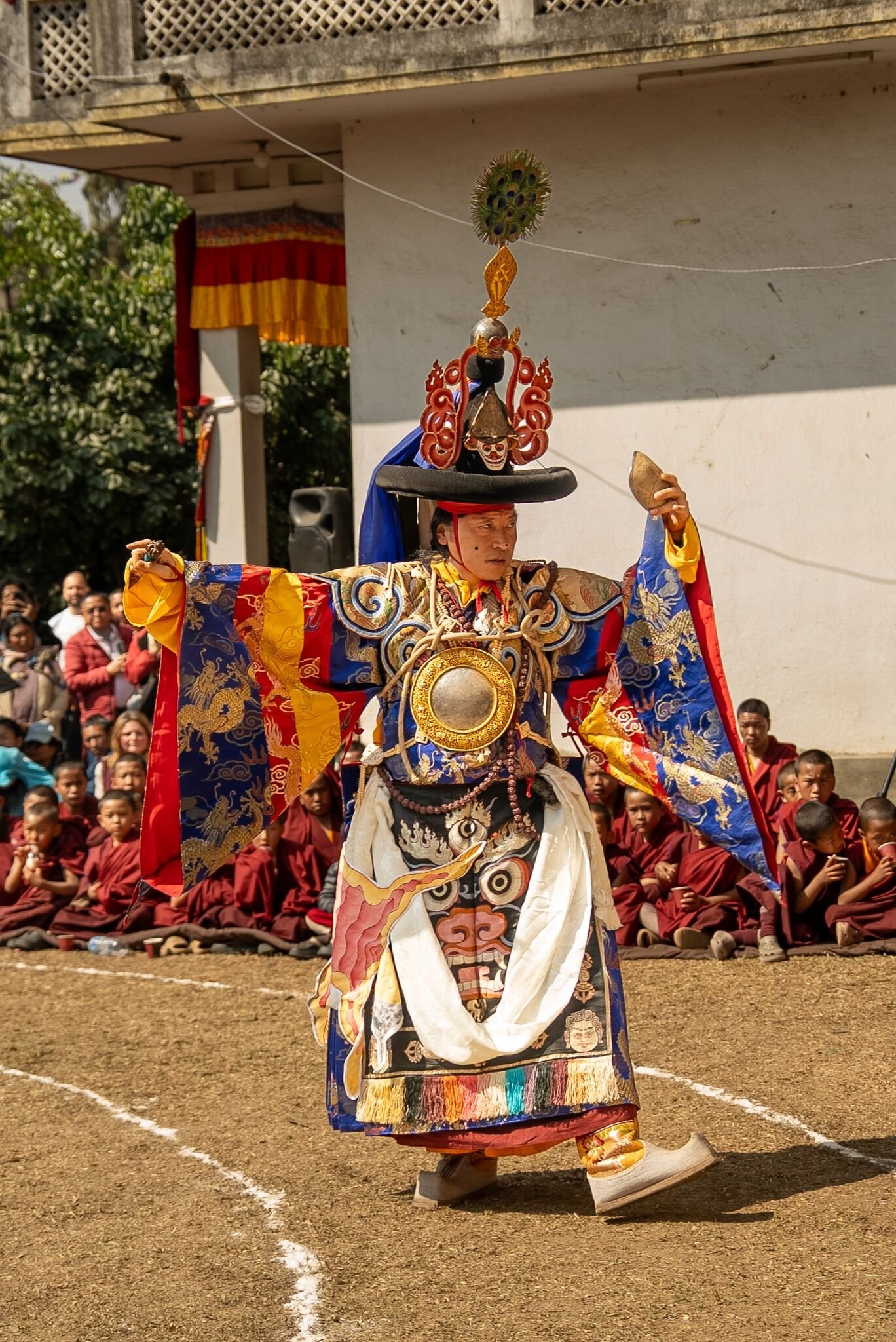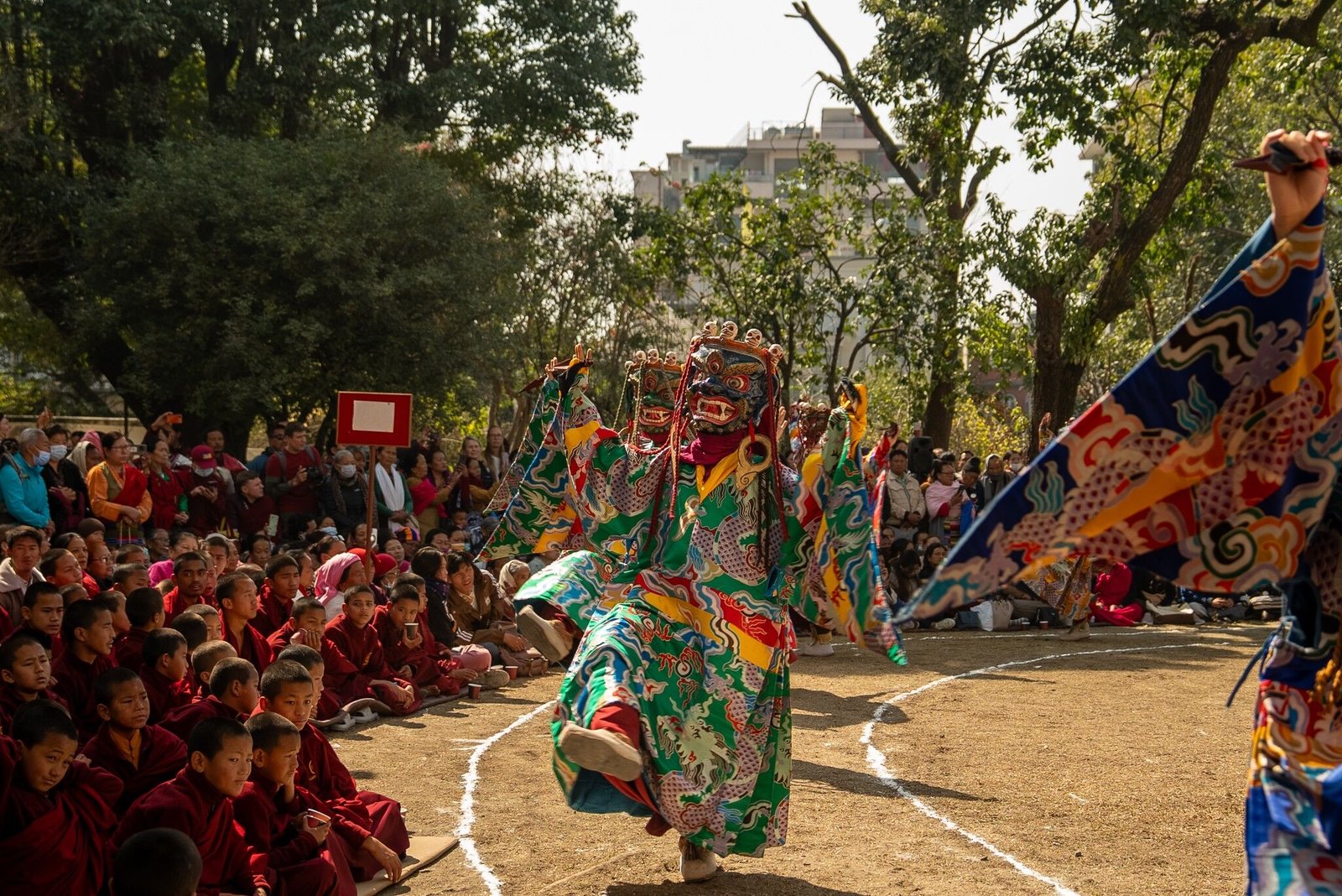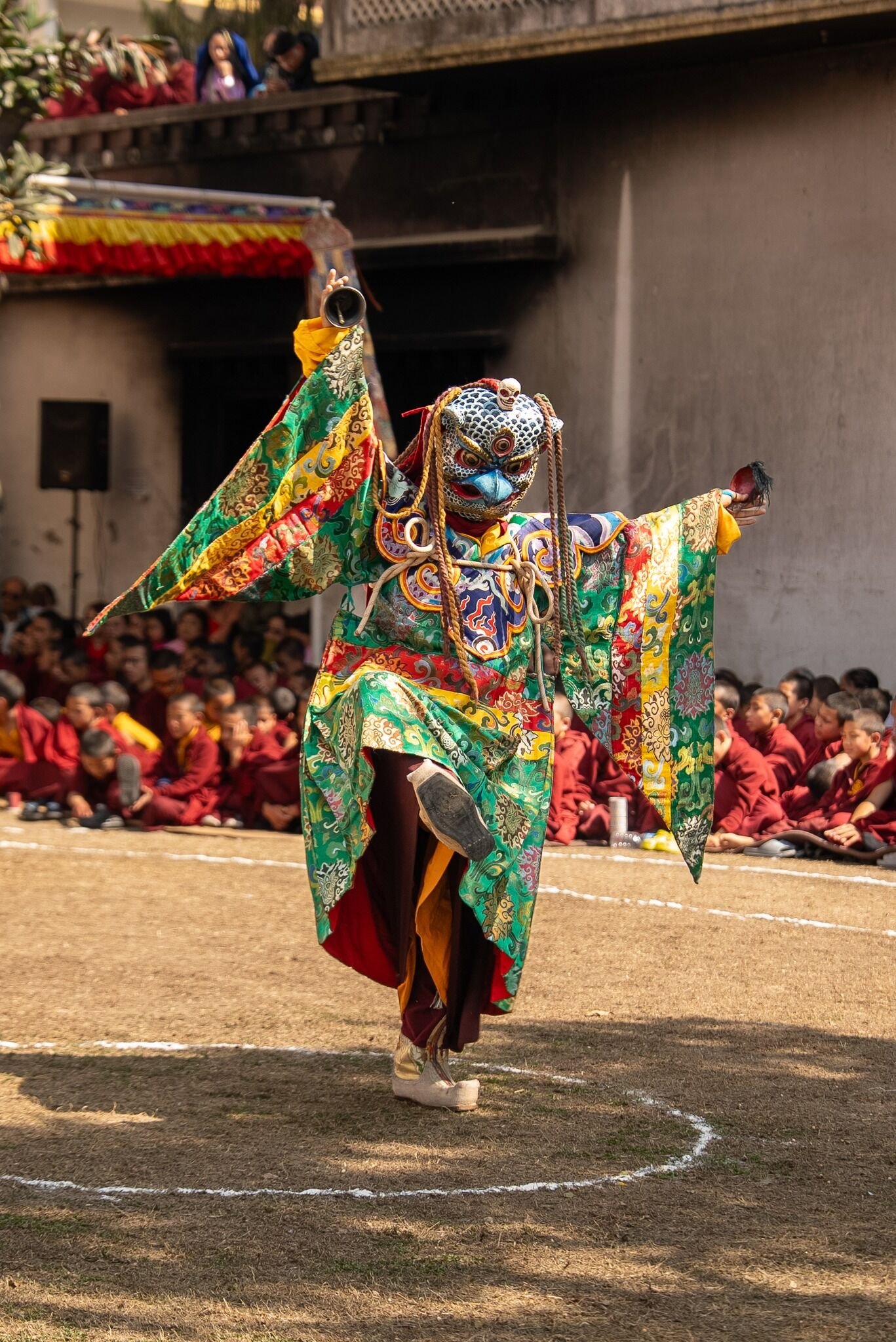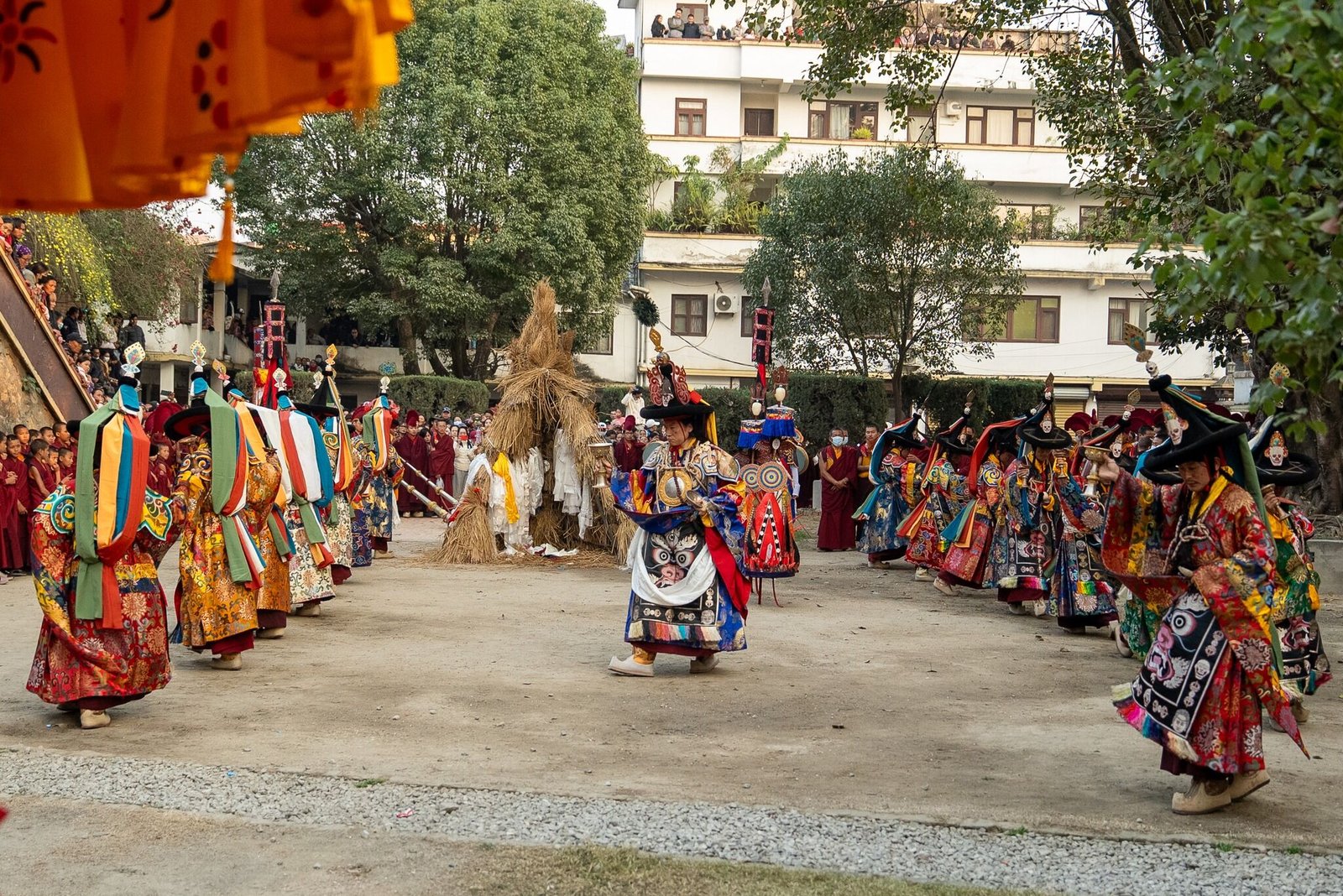 Танцы, исполняемые монахами, демонстрируют истории про божеств и демонов, показывая действие кармических результатов благих и неблагих поступков.
