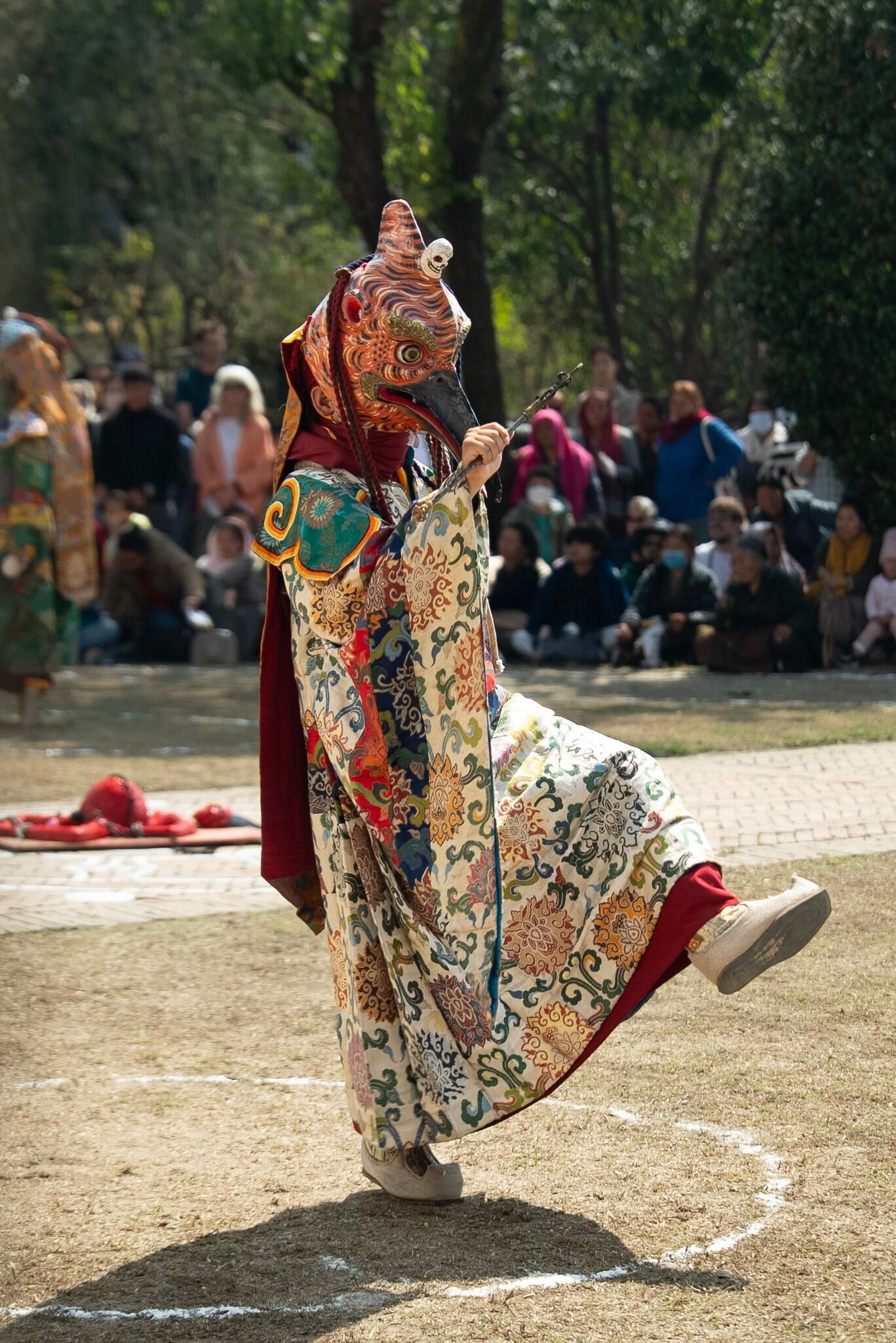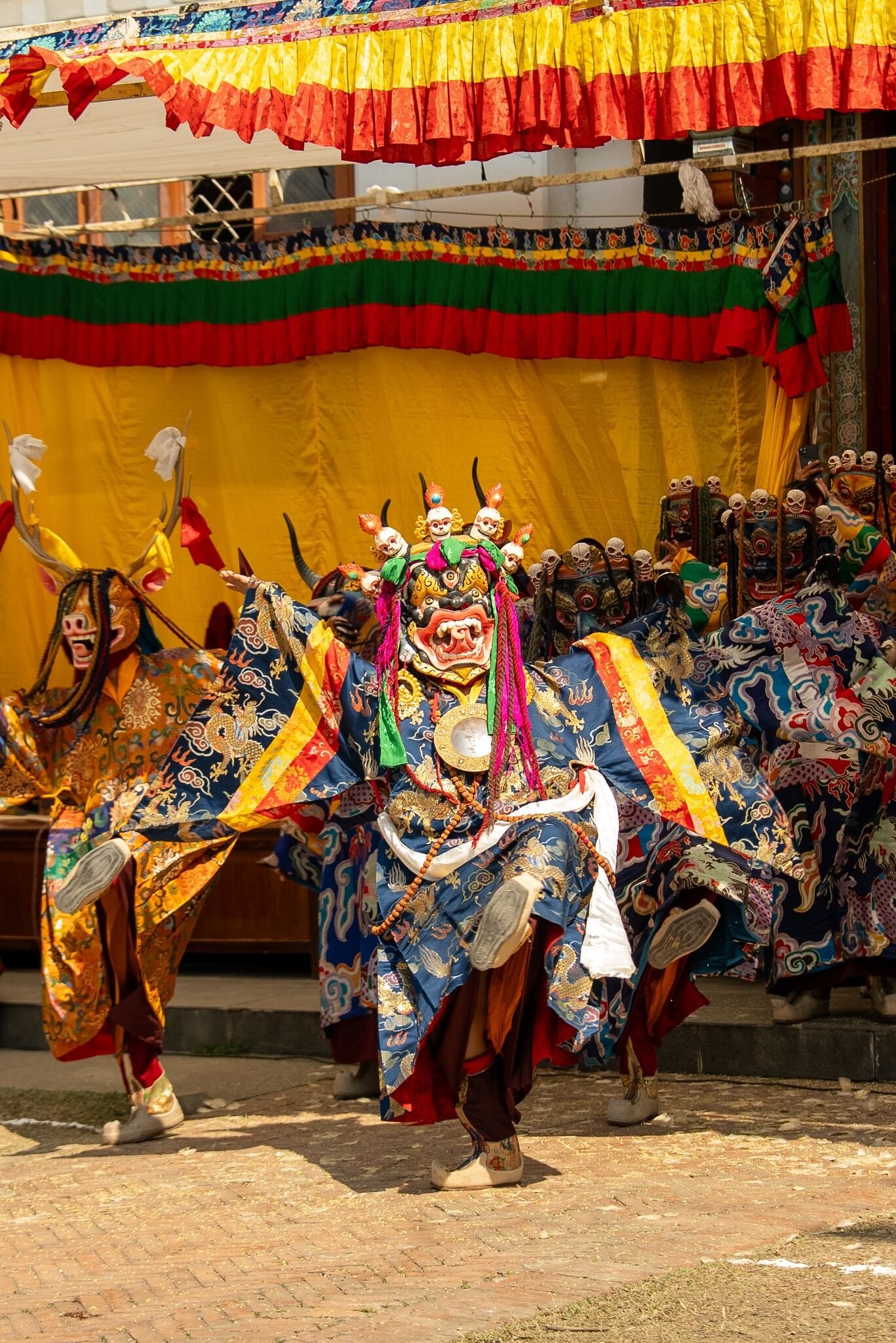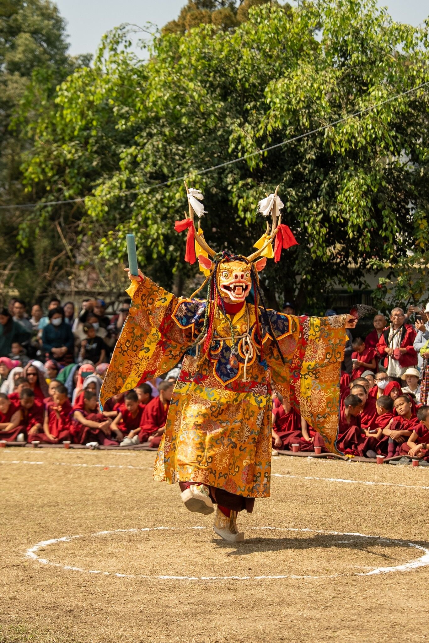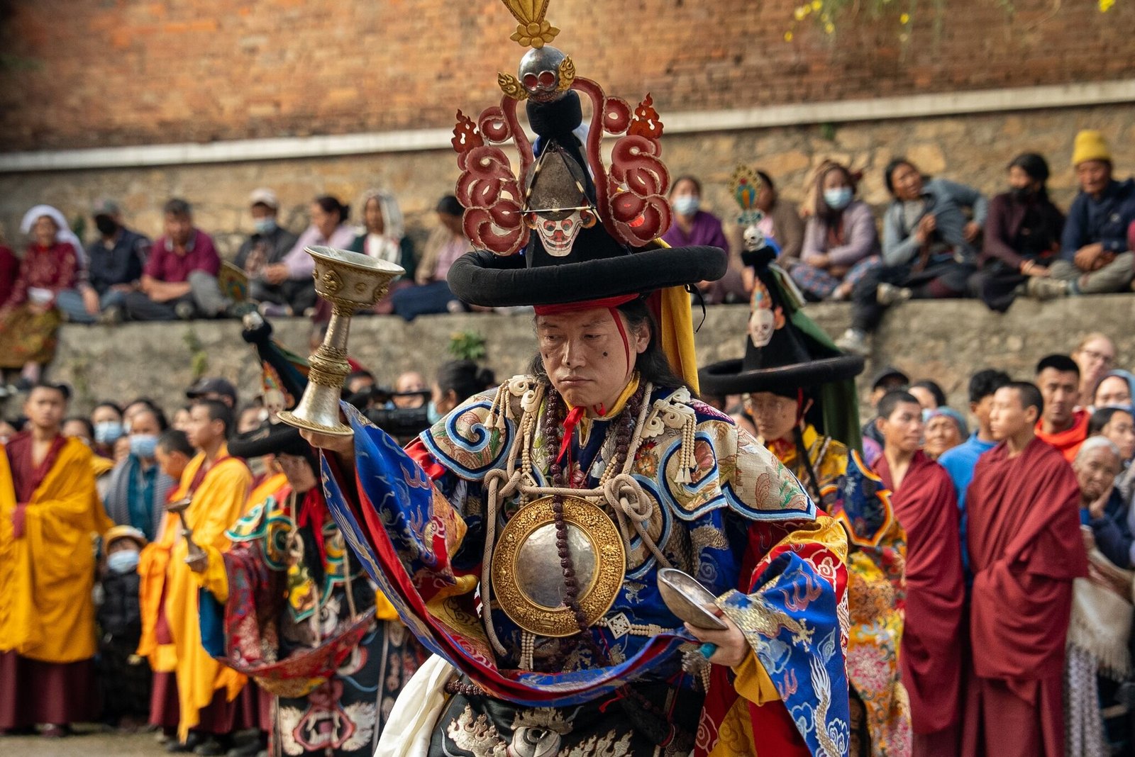 Танцы, исполняемые монахами, демонстрируют истории про божеств и демонов, показывая действие кармических результатов благих и неблагих поступков.