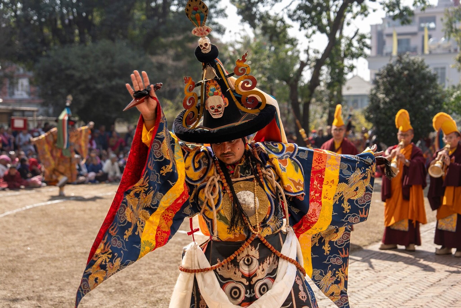 16 февраля, в заключительный день семидневной практики Ваджракилаи в непальском монастыре Ка-Ньинг Шедруб Линг посетители храма смогли увидеть красочные танцы чам, состоявшиеся в рамках пуджи гутор.