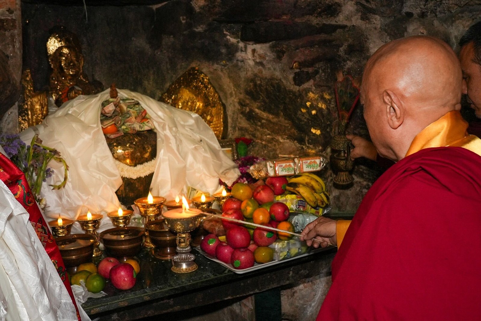 Чокьи Ньима Ринпоче и Тулку Ургьен Янгси Ринпоче вместе с монашеской сангхой монастыря Ка-Ньинг Шедруб Линг и учениками-мирянами выполнили серию ежегодных ритуалов: санг – подношение дыма и серкьем – подношение божествам-защитникам и хранителям Учения близ пещеры Асуры в Парпинге (Непал), священном месте, связанном с жизнью и медитативной практикой Гуру Падмасамбхавы, поделились сообщением о событии на официальной странице монастыря Ка-Ньинг Шедруб Линг.