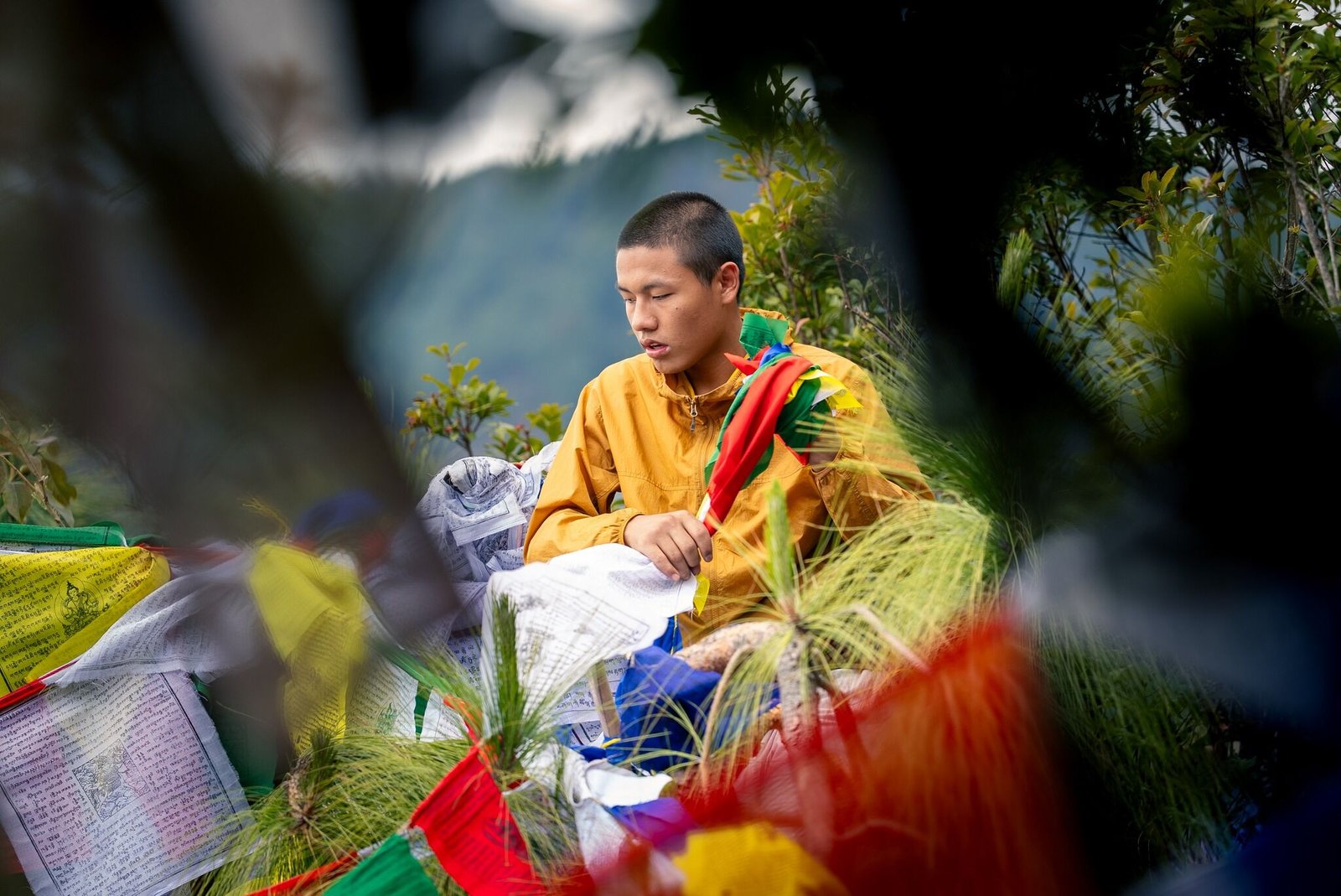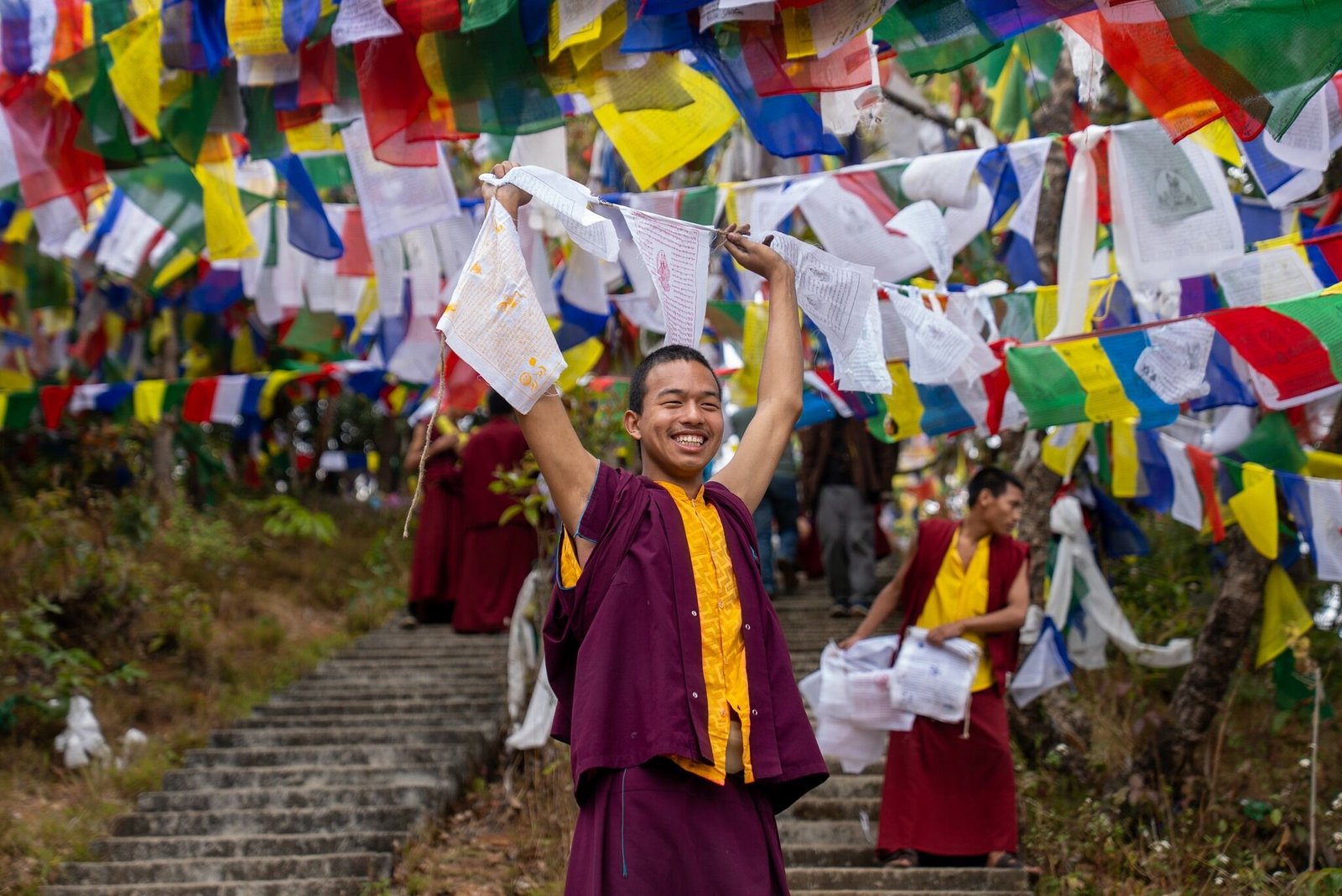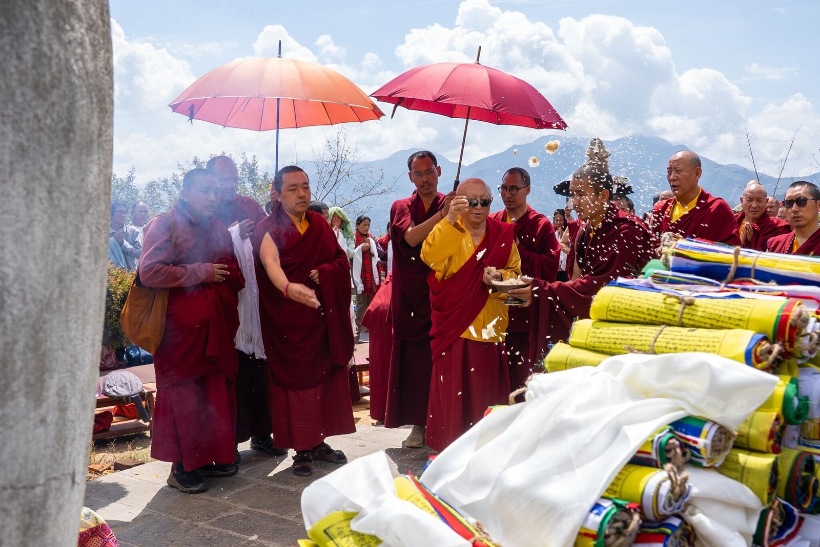 Также были благословлены многочисленные молитвенные флаги лунгта, которые затем были развешены юными монахами там же на открытом пространстве, разнося с каждым дуновением ветра благопожелания об умиротворении всех стихийных бедствий, и чтобы во всем мире царили мир и счастье. Подробнее о практике развешивания лунгта в нашем ранее подготовленном материале.