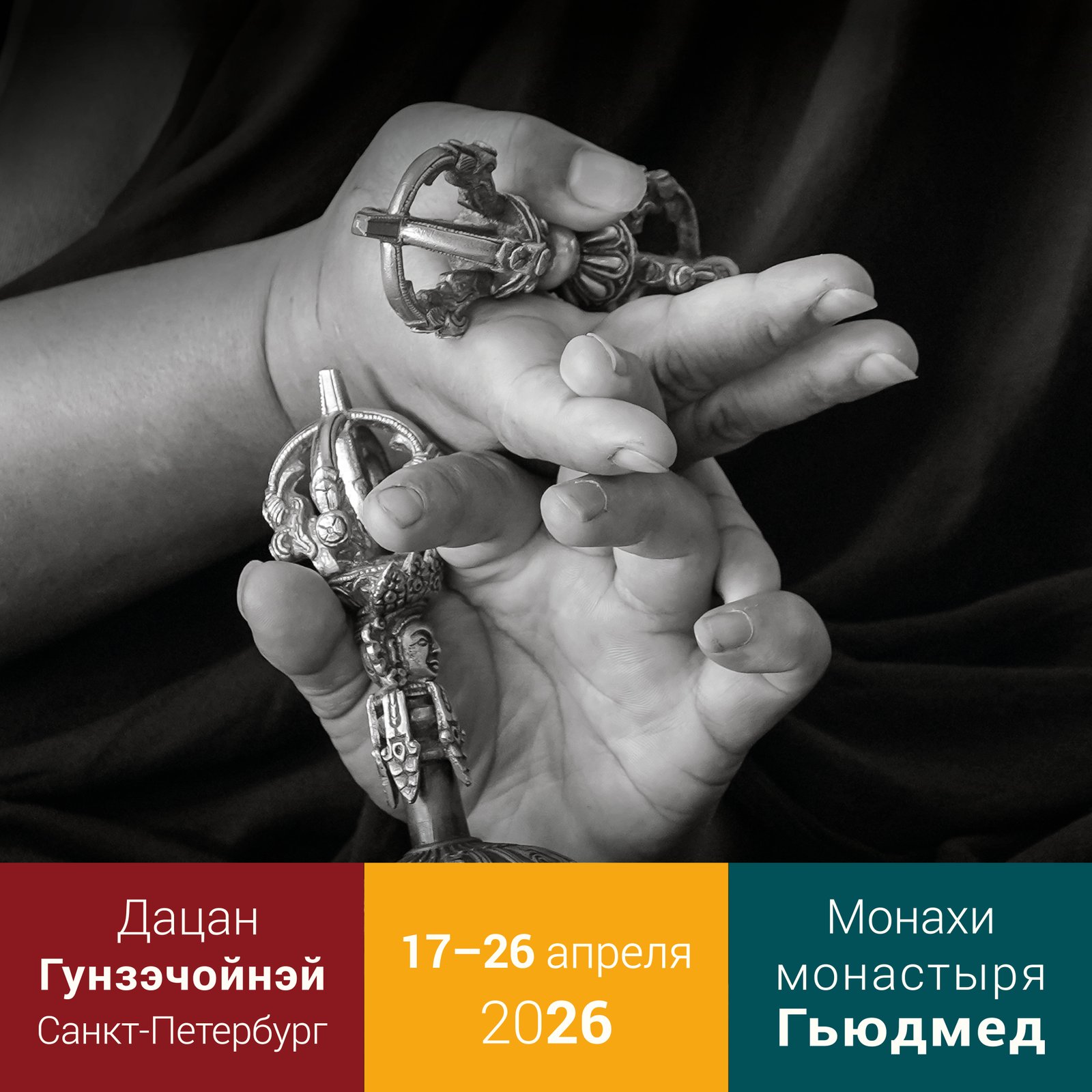 По личной просьбе настоятеля монахи монастыря Гьюдмед возведут в Санкт-Петербургском дацане песочную мандалу буддийского божества Гухьясамаджа, которого также называют «царем тантр». Гухьясамаджа – главный йидам (божество медитации) монастыря Гьюдмед. Связанные с ним тантрические учения и ритуалы лягут в основу обширной программы фестиваля 2026 года.