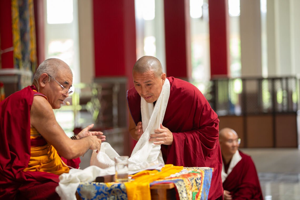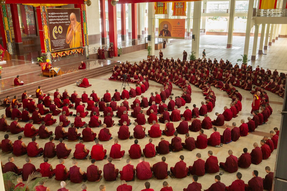 – В защите (по-тибетски «геше-дамча») мы принимали участие всей группой. А нас в этом году рекордное количество – 70 геше, 67 из которых участвовали в защите. Такого не было за всю многовековую историю монастыря Дрепунг Гоманг. В итоге 43 геше получили высшую степень лхарамбы. Диспуты выстроены так, что любой из старших геше монастыря, а также студенты высших курсов могли проверить знания новых геше, задавая вопросы и ведя диспут по всем разделам учебной программы – начиная с Винаи (свода наставлений Будды касательно дисциплины) и Абхидхармы (буддийская метафизика) до Праманы (буддийской теории познания). Диспут, как правило, начинается с цитаты из какого-либо материала. Отвечающий должен сказать точное название и раздел текста. Далее нужно пересказать суть содержания, дать пояснения на другие вопросы по теме, разрешая противоречия, на которых строится диспут.