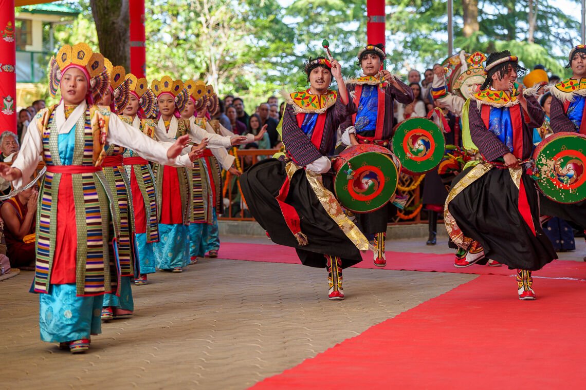 Тхекчен-Чолинг, Дхарамсала, штат Химачал-Прадеш, Индия, 22 апреля 2026 г. – В Цуглакханге, главном тибетском храме в Дхарамсале, общество социальной помощи «Дхаса Дотё» и ассоциация социальной помощи «Лодрик» провели молебен о долголетии Его Святейшества Далай-ламы. Представители этих организаций приветствовали Его Святейшество у ворот его резиденции, а затем сопроводили его до храма. Тибетские артисты пели приветственные песни и исполняли танец «Таши шолпа». Его Святейшество улыбался и махал рукой собравшимся, которых было около 5000 человек. Внутри храма он занял место на троне.